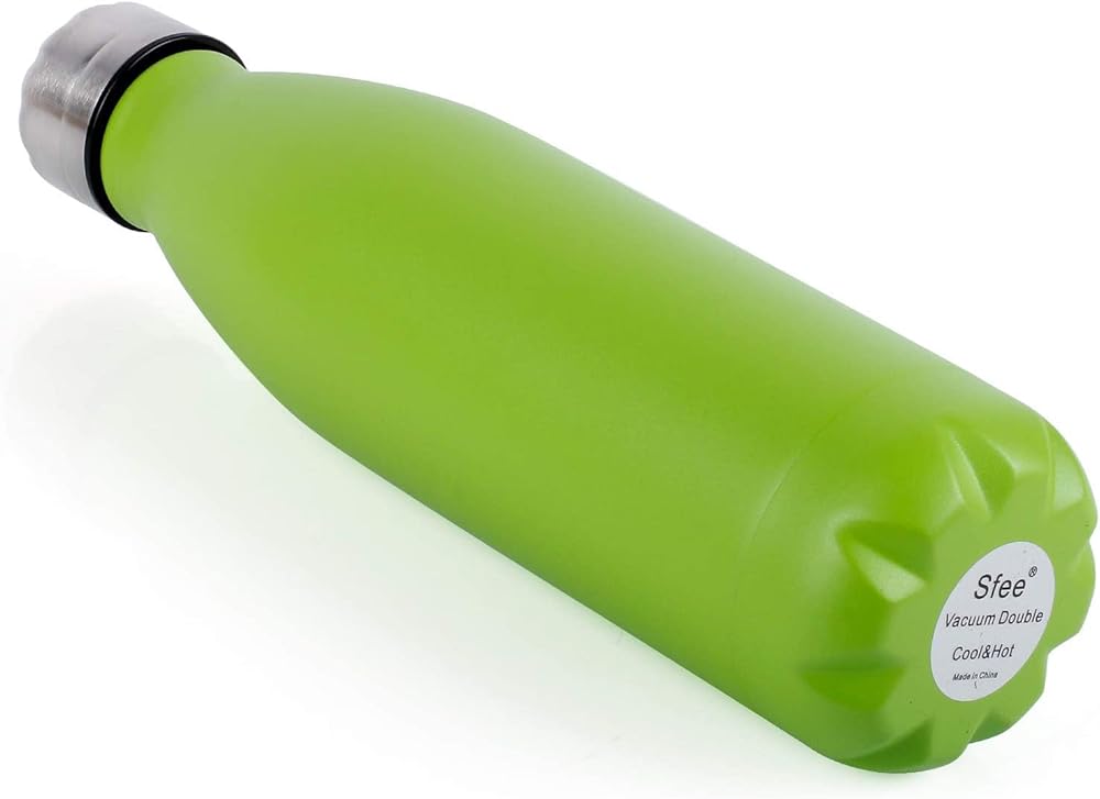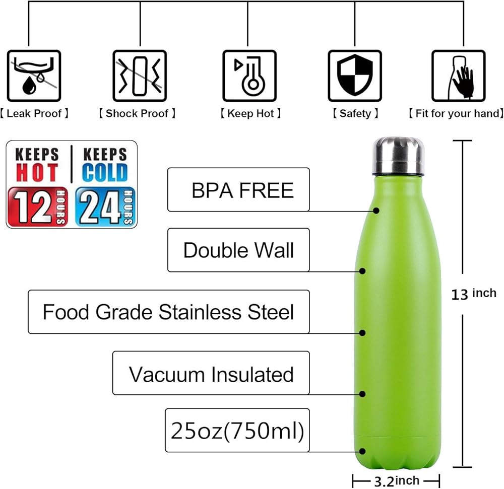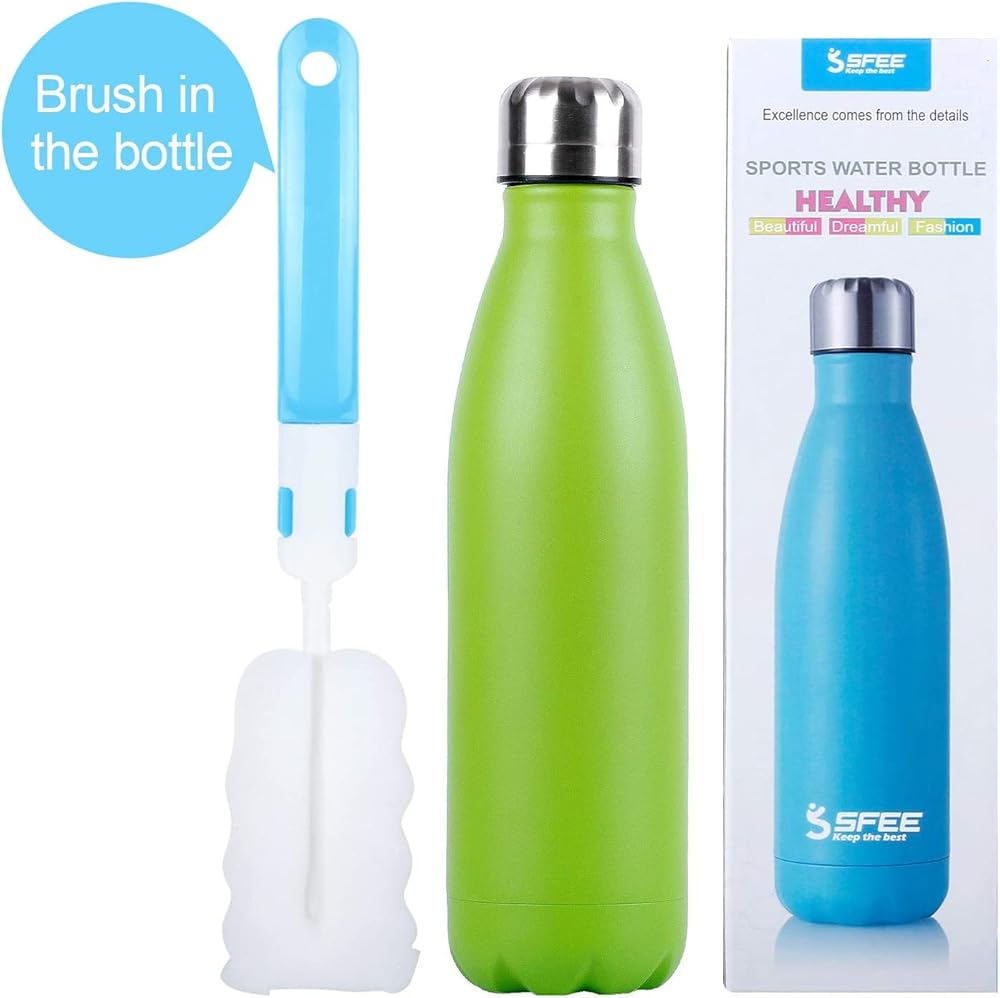 زجاجة مياه معزولة سعة 25 أونصة من Sfee مصنوعة من الفولاذ المقاوم للصدأ بجدار مزدوج وزجاجة مفرغة مانعة للتسرب تحافظ على المشروبات الساخنة والباردة خالية من مادة BPA للأطفال في الهواء الطلق والتخييم الرياضي + فرشاة تنظيف (أخضر)