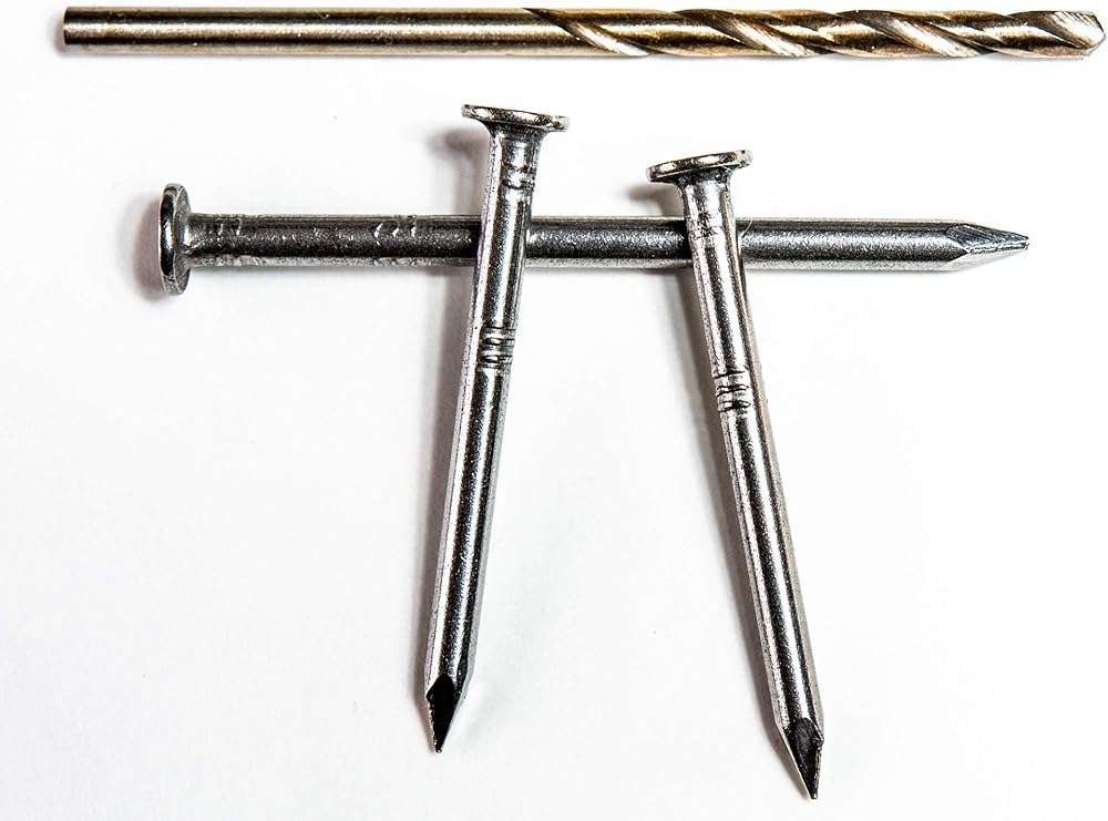 This kit contains (2) 4d and (1) 6d stainless steel nails, and (1) 7/64 drill bit.