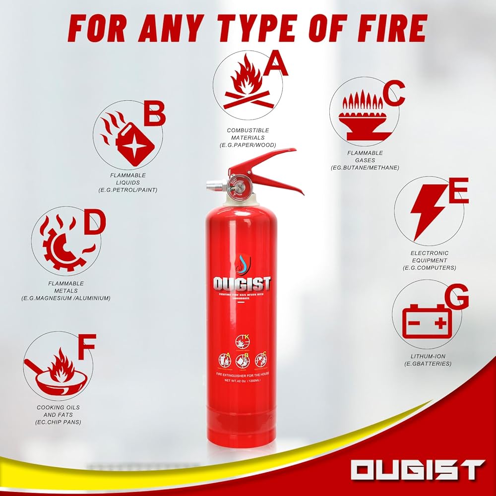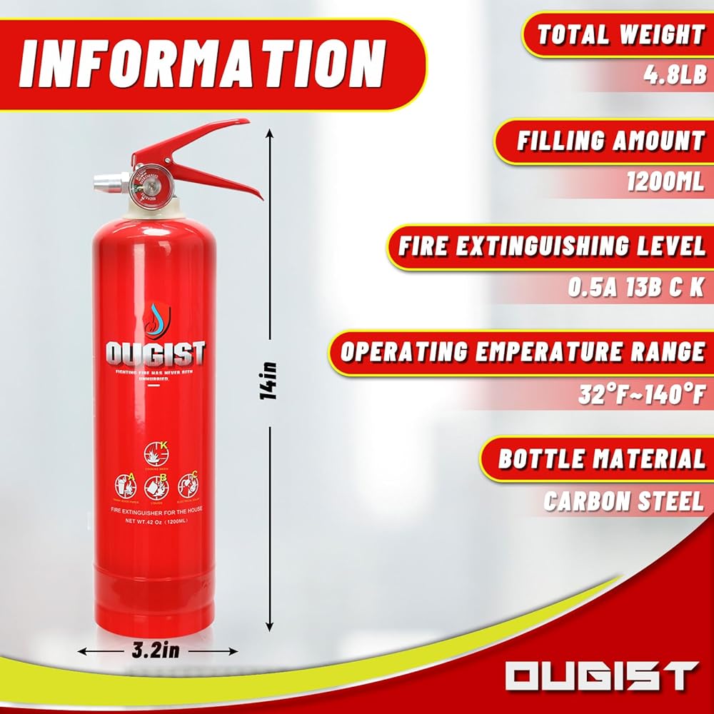 راحة البال في أي وقت وفي أي مكان: مع طفاية حريق Ougist، يمكنك أن تطمئن إلى أنك مستعد لأي طوارئ حريق. حافظ على سلامة منزلك وسيارتك باستخدام طفايات الحريق الموثوقة والفعالة لدينا.