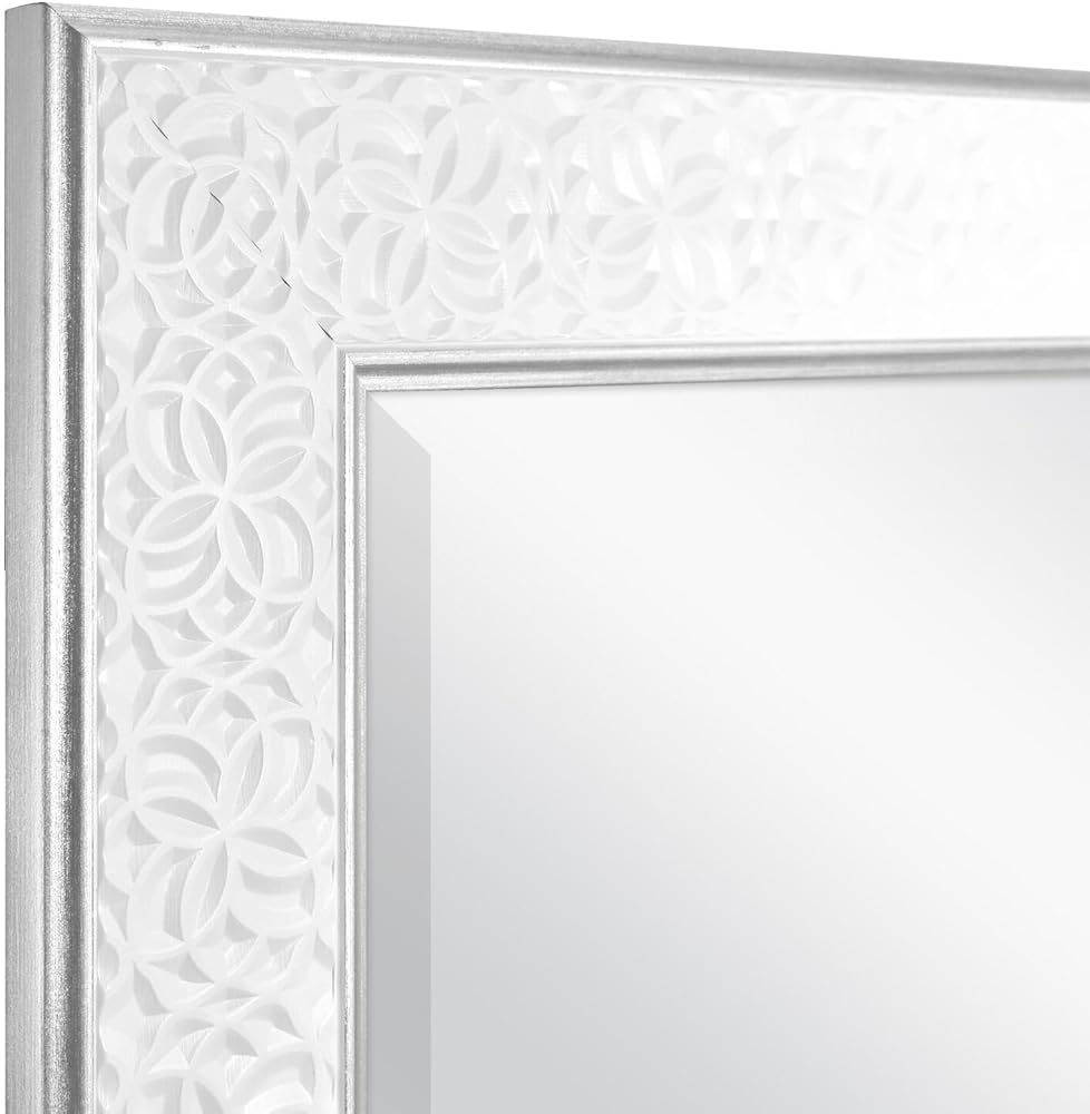 • Quality Construction: This hanging mirror features a decorative white blossom frame complete with silver edges and a reflective surface made of 4mm mirror glass with a classic 1-inch beveled edge