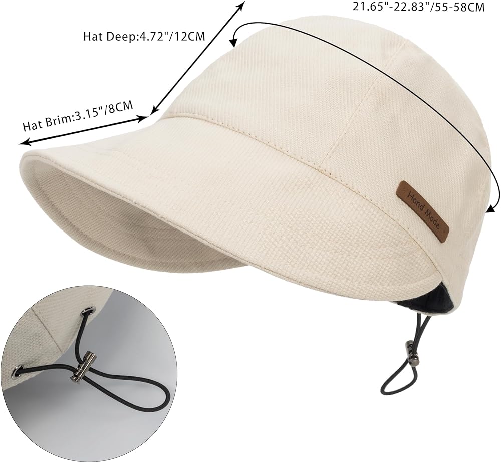 【حجم قابل للتعديل】- قبعة بيسبول صيفية للنساء مع حماية من الأشعة فوق البنفسجية بحافة عريضة مناسبة لمحيط الرأس: 21.65 بوصة - 22.83 بوصة/55-58 سم، وحزام قابل للتعديل، مصممة لتناسب جميع أحجام الرأس دون عناء.