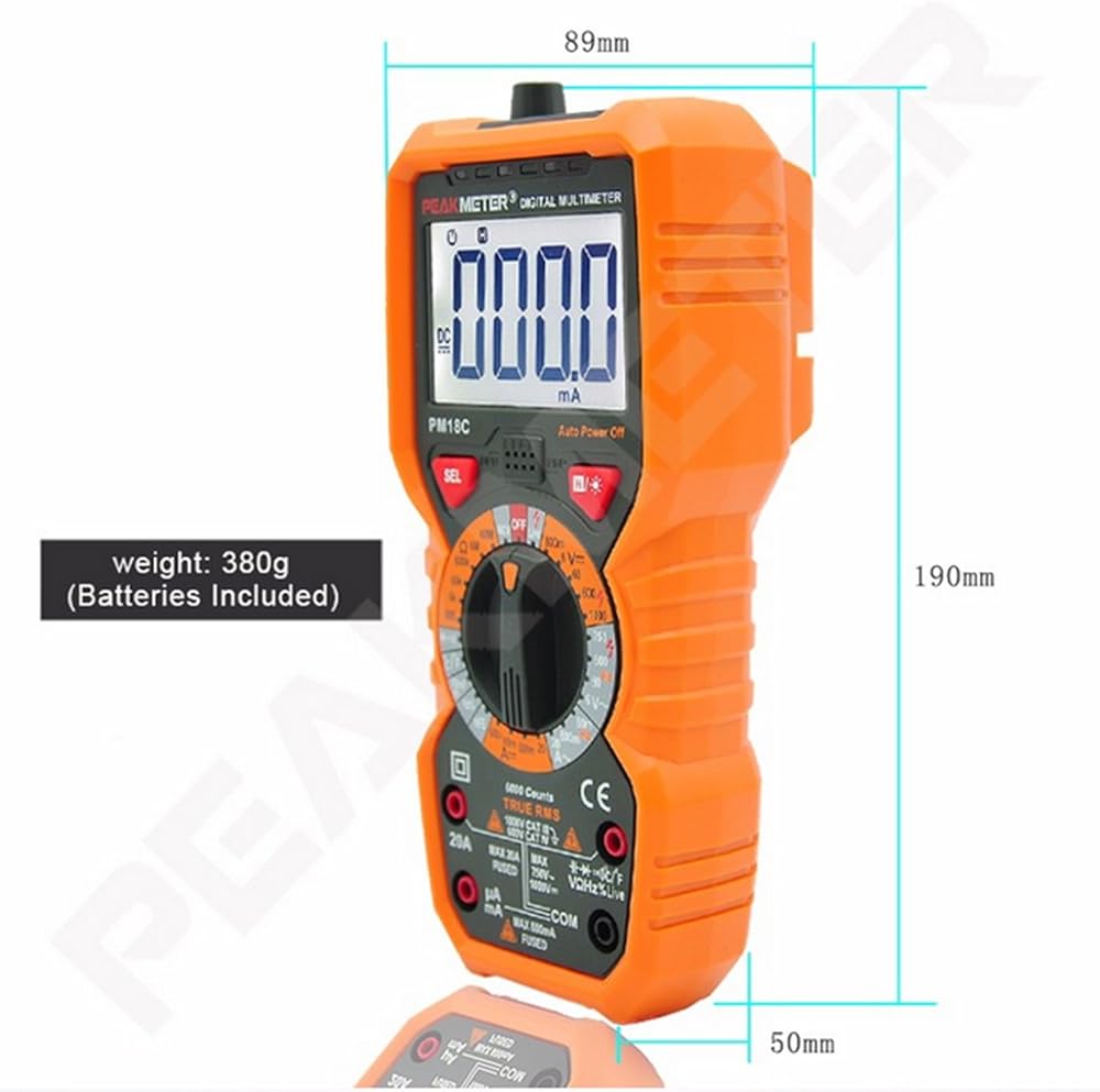 PM18C رقمي متعدد تيار مستمر التيار المتناوب متعدد الجهد فاحص التيار اليدوي المدى الخلفية مع 6000 التهم غطاء برتقالي