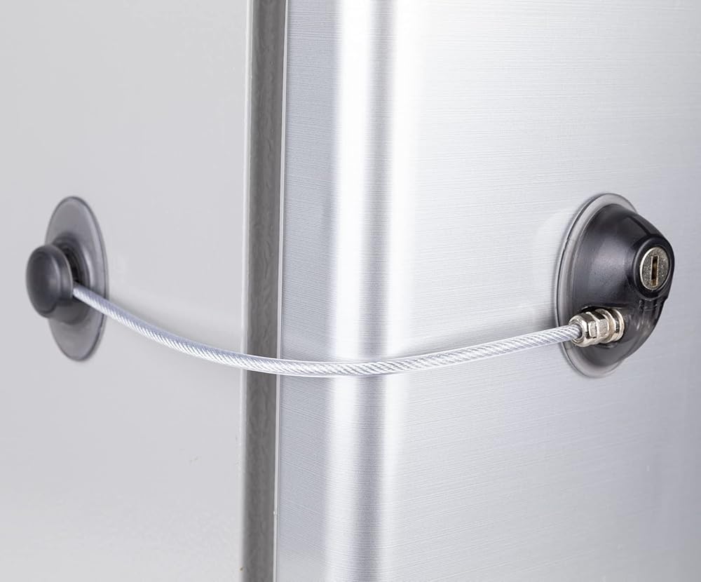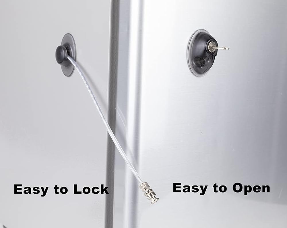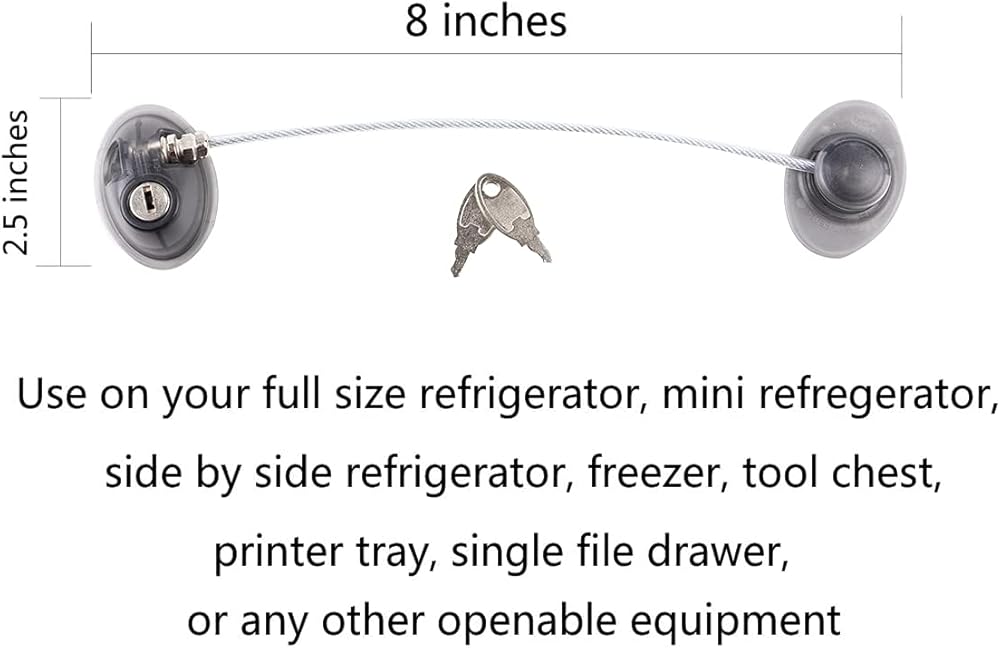 • جودة عالية: يستخدم قفل الثلاجة الأشرطة اللاصقة القوية وكابل 4 مم مع علبة مطاطية واقية لحماية الأدوية أو الكحول أو حتى غداءك من الوقوع في الأيدي الخطأ.