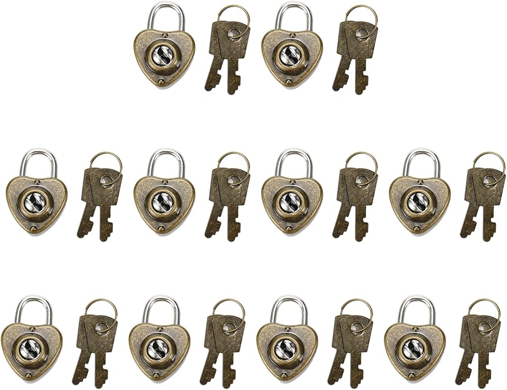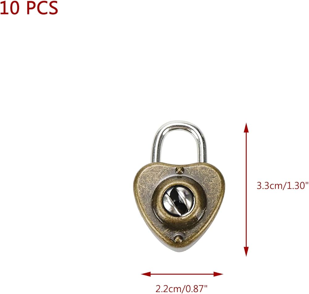 10 قطع من القفل البرونزي العتيق للزوجين على شكل قلب قفل صغير مع مفتاح معدني صغير مجموعة قفل المفاتيح، 1.30 بوصة × 0.87 بوصة، لصندوق تخزين المجوهرات وكتاب اليوميات وحقيبة الظهر المدرسية