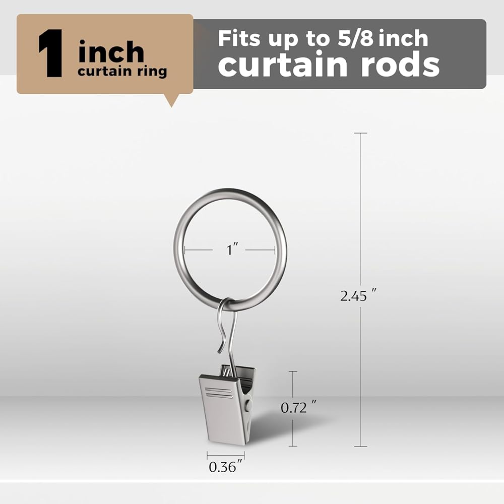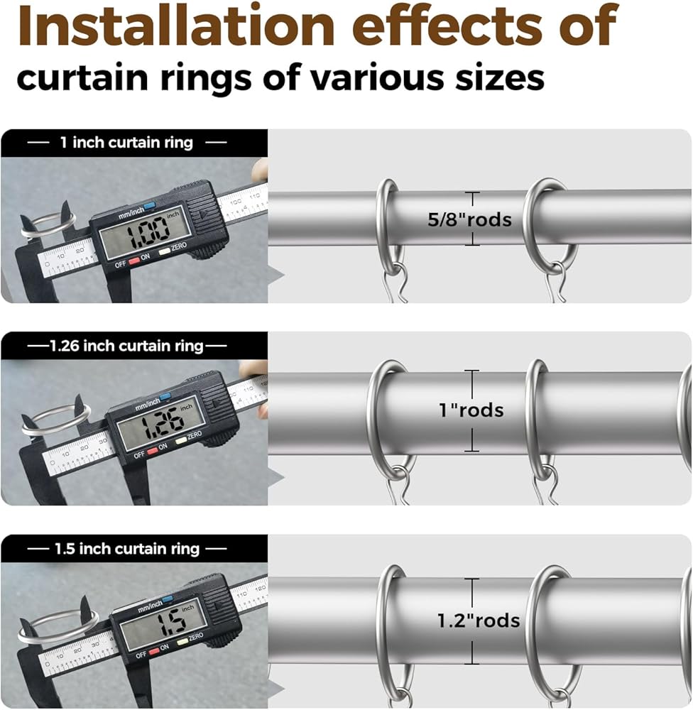 【حجم حلقات الستارة مع المشابك】القطر الداخلي لحلقات الستائر هو 2.5 سم، يناسب قضبان الستارة بقطر يصل إلى 5/8 بوصة أو أصغر.