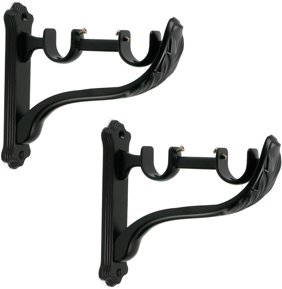 2 حزمة مزدوجة قضيب الستارة بين قوسين خمر ريشة شكل قابل للتعديل الستار الستارة قضيب حامل مجموعة الثقيلة قضيب الستارة جدار قوس لقضيب 1 إلى 1.2 بوصة، أسود