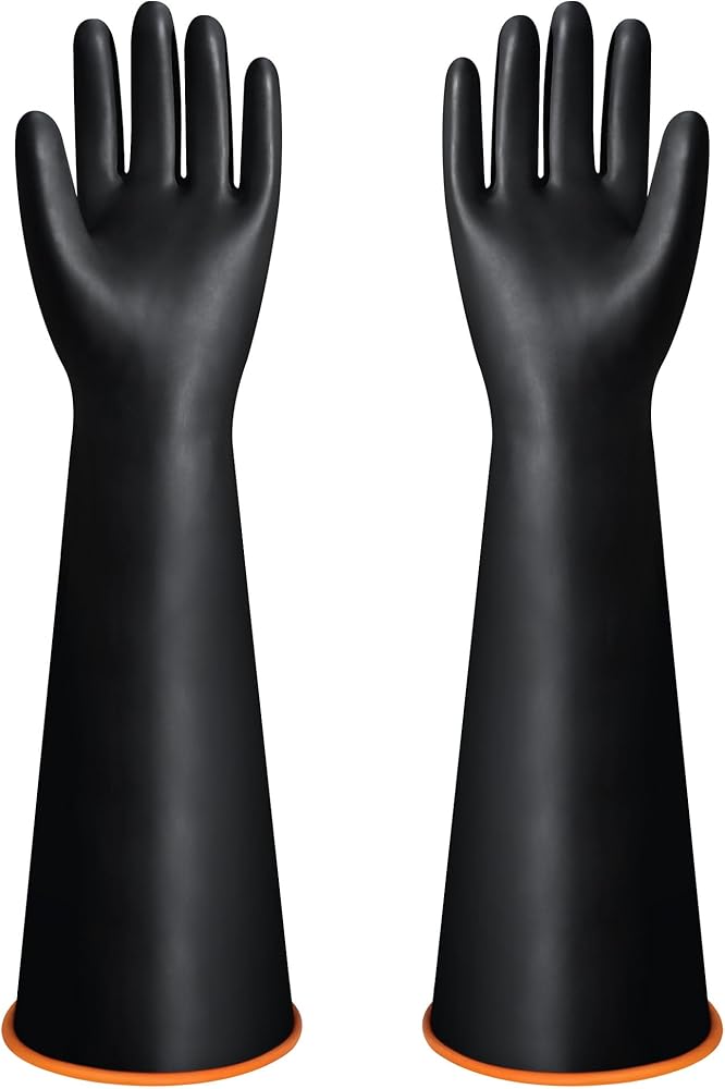 【قفازات سوداء طويلة】-- تحتوي قفازنا المطاطي على نموذج واحد كبير الحجم فقط، يبلغ طوله 22 بوصة/55 سم وسمك 1.1 مم. توفر الأصفاد الممتدة حماية فعالة للمعصم والساعد من البقع والمواد الكاشطة والمواد الكيميائية الخطرة. انها مناسبة لمختلف أنواع اليد. والشعور الجيد غير مبطن للخفة والراحة ومقاومة الحرارة.