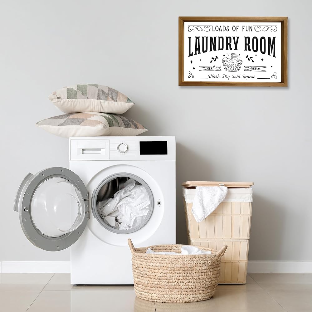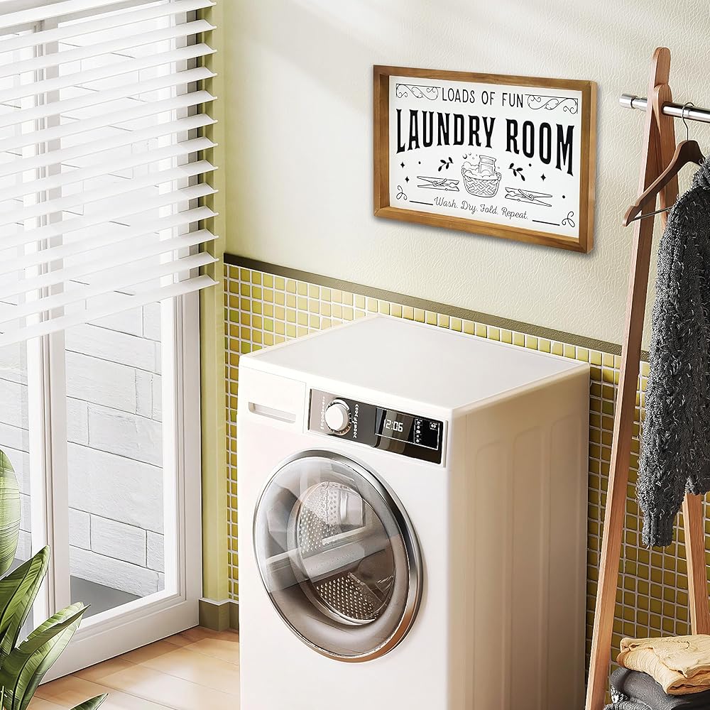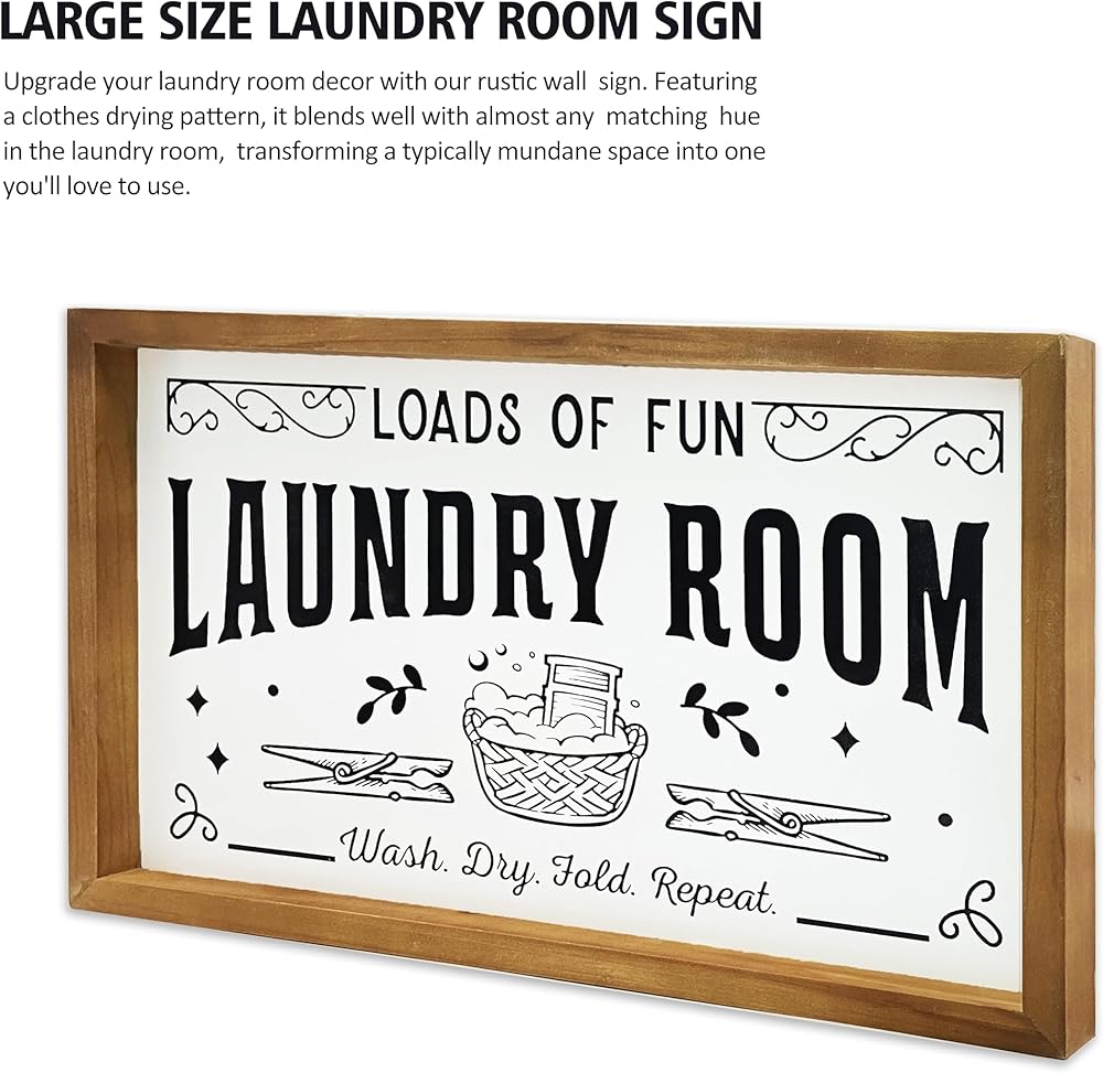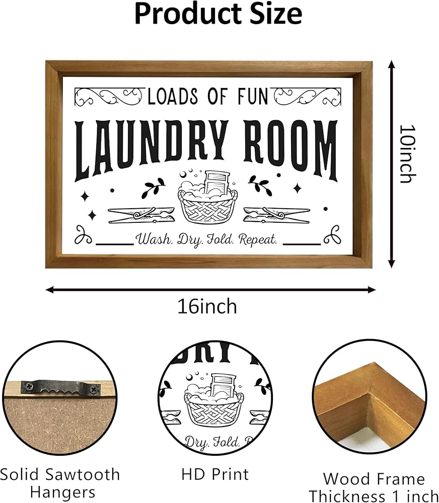 • Durable Craftsmanship: Created with premium wood and printed with high-quality ink, this 16" x 10" laundry signs for laundry room is crafted to withstand the test of time. It's built to endure the normal wear and tear of a busy laundry room.