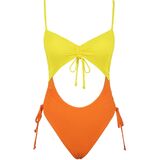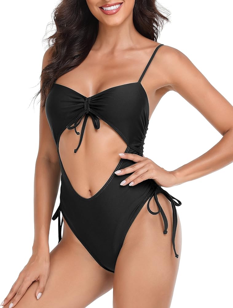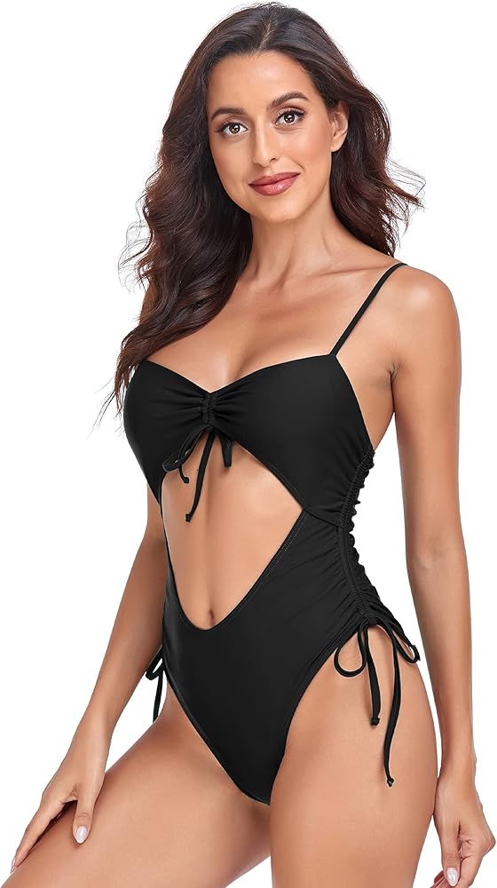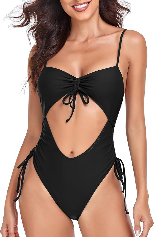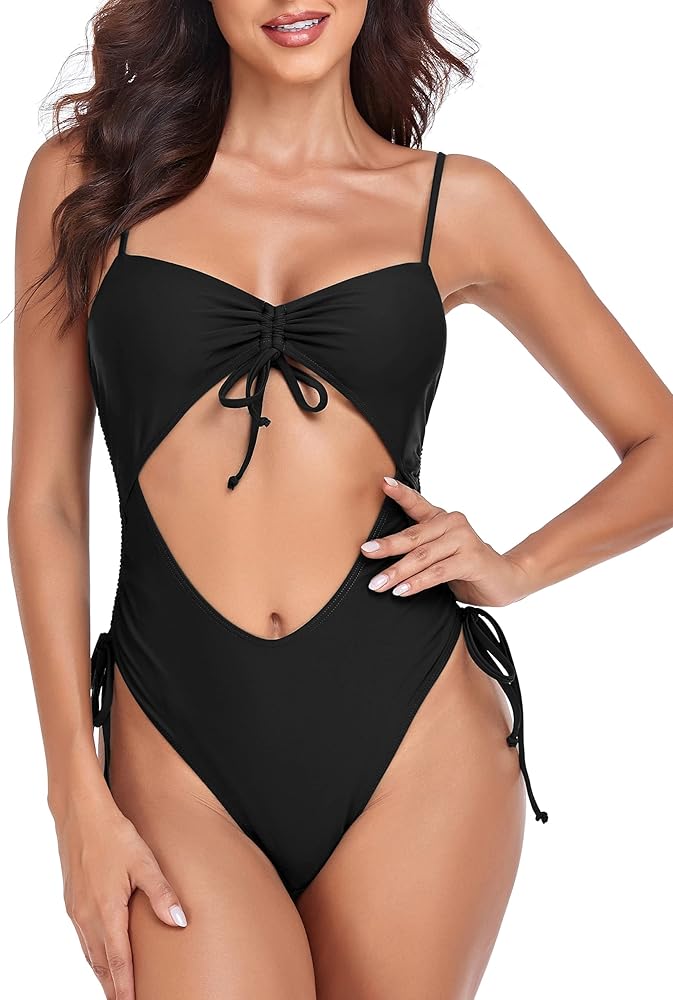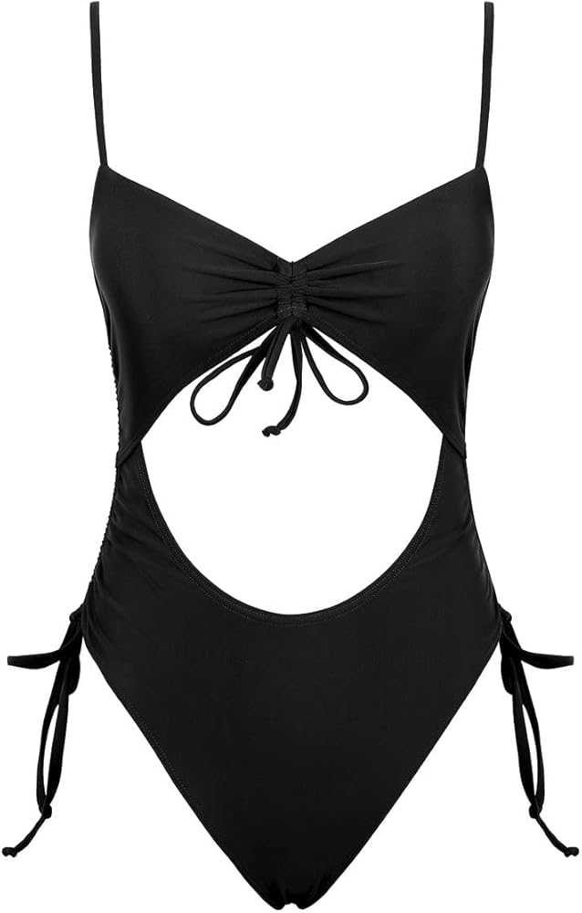 Adjustable spaghetti strap, slimming to wear but not limit your freedom. Ruched tie details, highlight the swimsuits and accentuate your curves. Cutout front design, perfect for tummy control and shows your sexy figure. One piece high waisted bathing suit, full lining provides soft touch for your skin. A must-have item for beach, swimming pool, surfing, water sport, party, summer swimming wear, hot spring, vacation, clubwear and so on. Recommend with Cold Water. Do not Use Bleach. Do not Tumble Dry.
