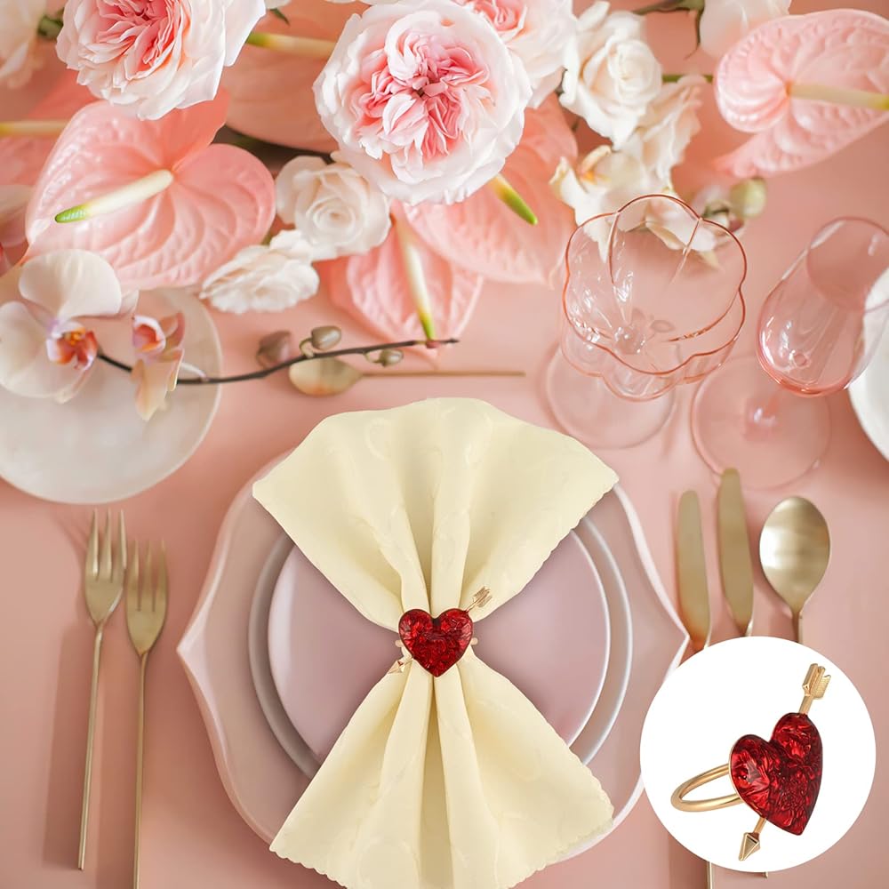 مجموعة حلقات منديل عيد الحب مكونة من 6 حلقات، حلقات منديل على شكل قلب أحمر، حامل حلقات منديل معدنية لحفلات الزفاف والعطلات والذكرى السنوية وديكور طاولة الطعام العائلية