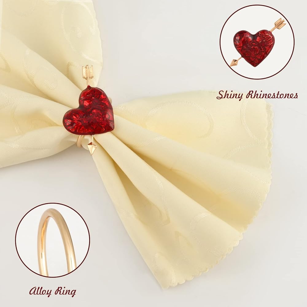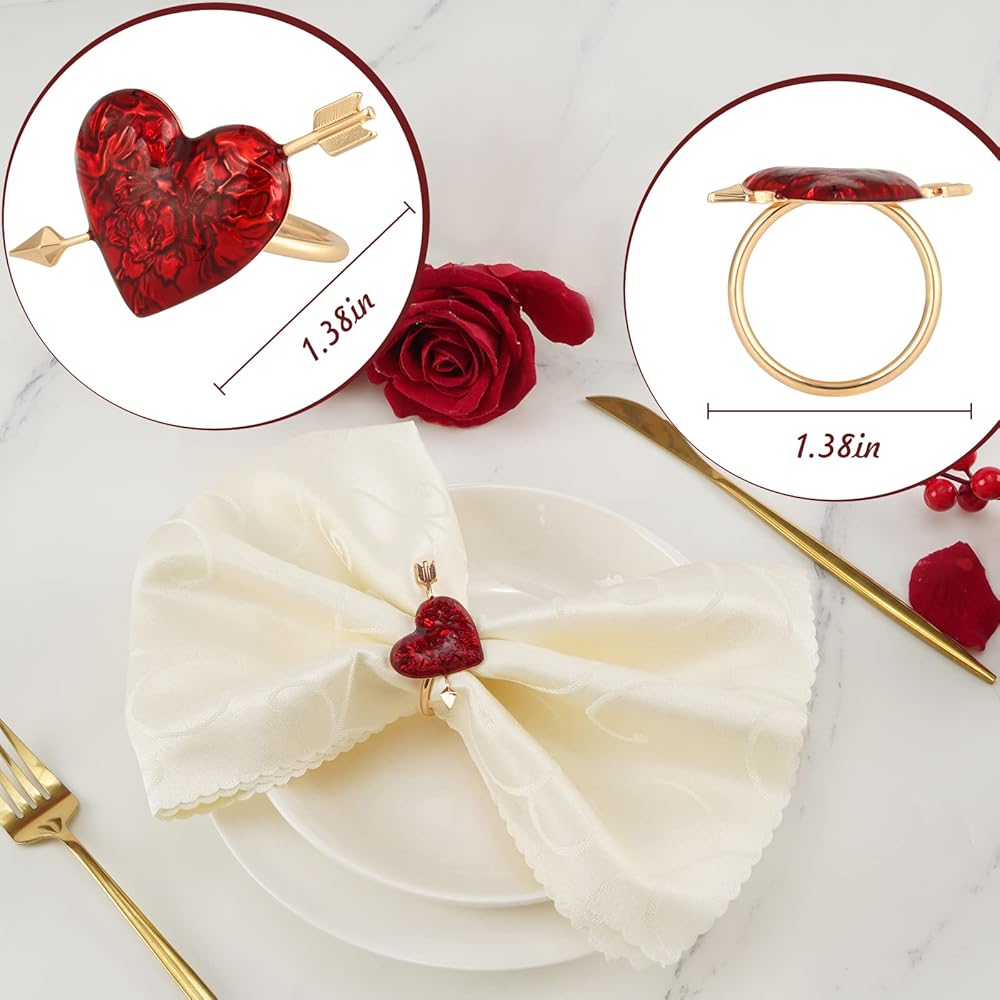 مادة فاخرة: حلقات المناديل ذات القلب الأحمر مصنوعة من سبيكة ممتازة، قوية ومتينة، ليس من السهل تشويهها أو كسرها. جزء القلب مطلي باللون الأحمر، مما يضيف زخرفة رائعة إلى طاولة الطعام الخاصة بك.