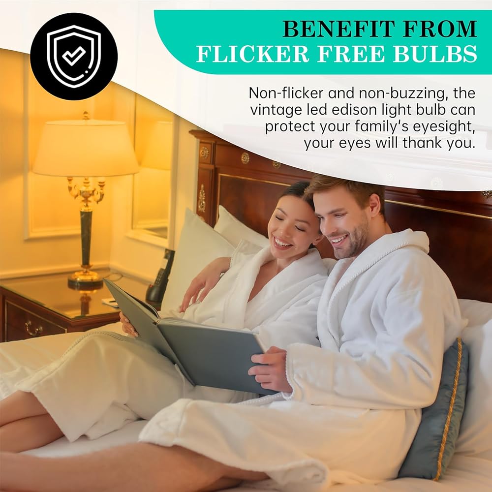 3.[توفير الطاقة وعمر افتراضي طويل] - تعمل لمبة إديسون LED ذات الخيوط الحلزونية العتيقة بقدرة 4 وات وهو ما يعادل اللمبة المتوهجة التقليدية بقدرة 25 وات، للسماح لنا بتوفير ما لا يقل عن 85% من الكهرباء المستهلكة. ويمكن للمصباح الكهربائي الأنبوبي أن يدوم حوالي 25000 ساعة، وهو أطول 25 مرة من المصباح المتوهج العادي.