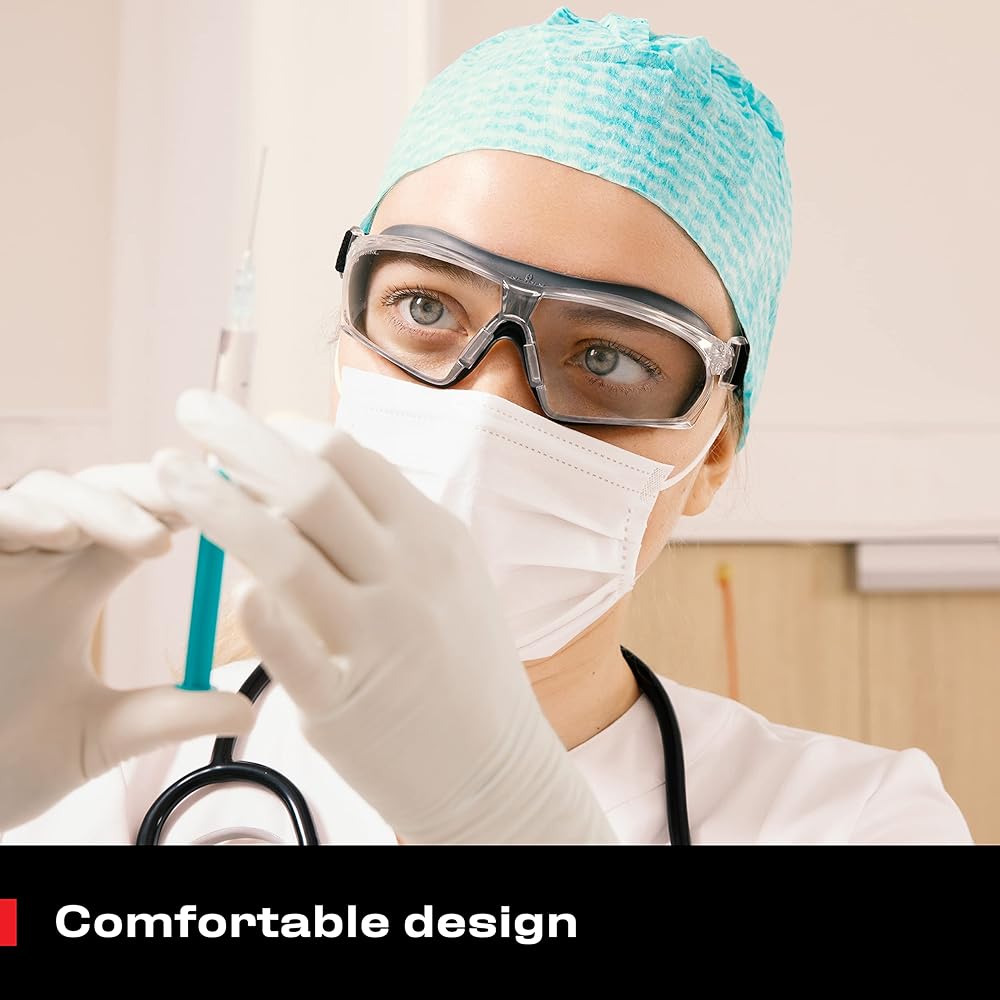 نظارات شفافة وخفيفة للغاية - إطار TPR الناعم يعانق وجهك ويشكل ختمًا مقاومًا للغبار والرذاذ. وبفضل الحجم الصغير، يمكنك ارتداء نظارات السلامة للرجال طوال اليوم. بالإضافة إلى ذلك، فإن هذه النظارات المقاومة للغبار متوافقة مع D4 لذا يمكنك إقرانها بقناعك المفضل أو جهاز التنفس لنصف الوجه.