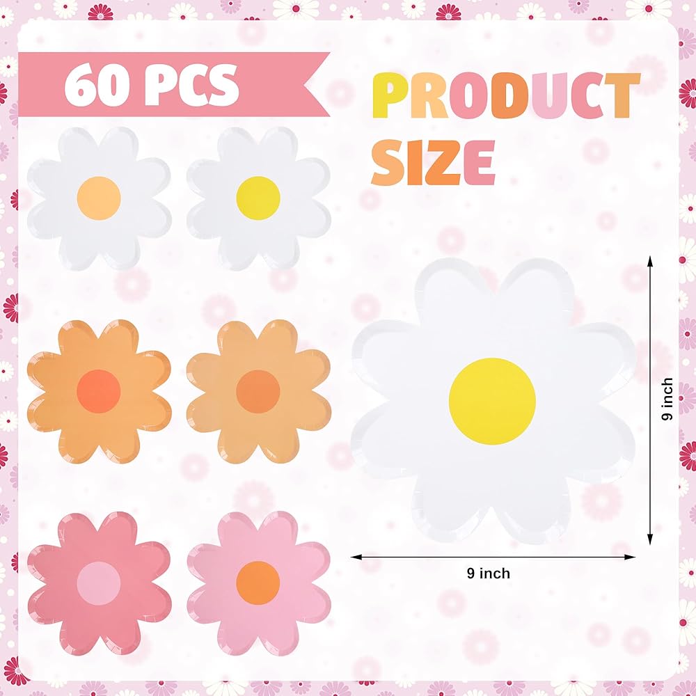 Package content: you will get 60 pieces 9-inch daisy shape paper plates in 6 colors, 10 pieces for each color, 60 pieces in total, colorful daisy shape design, elegant and exquisite, enough quantity to meet your daily, holiday or party needs.