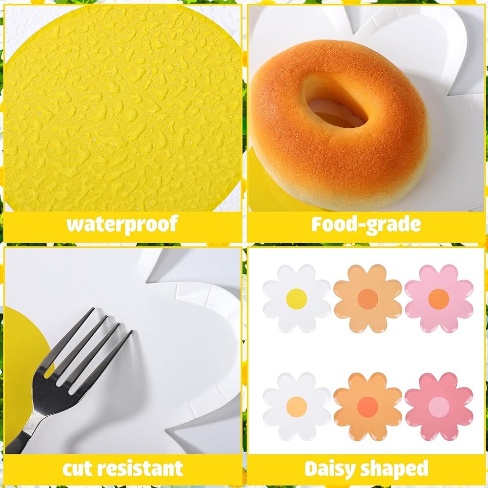 Save your time: these daisy flower theme disposable plates are disposable and easy to clean. You just need to throw the daisy shape paper plates into the trash after the party. Disposable plates save time and effort, allowing you to spend more party time with your family and friends.