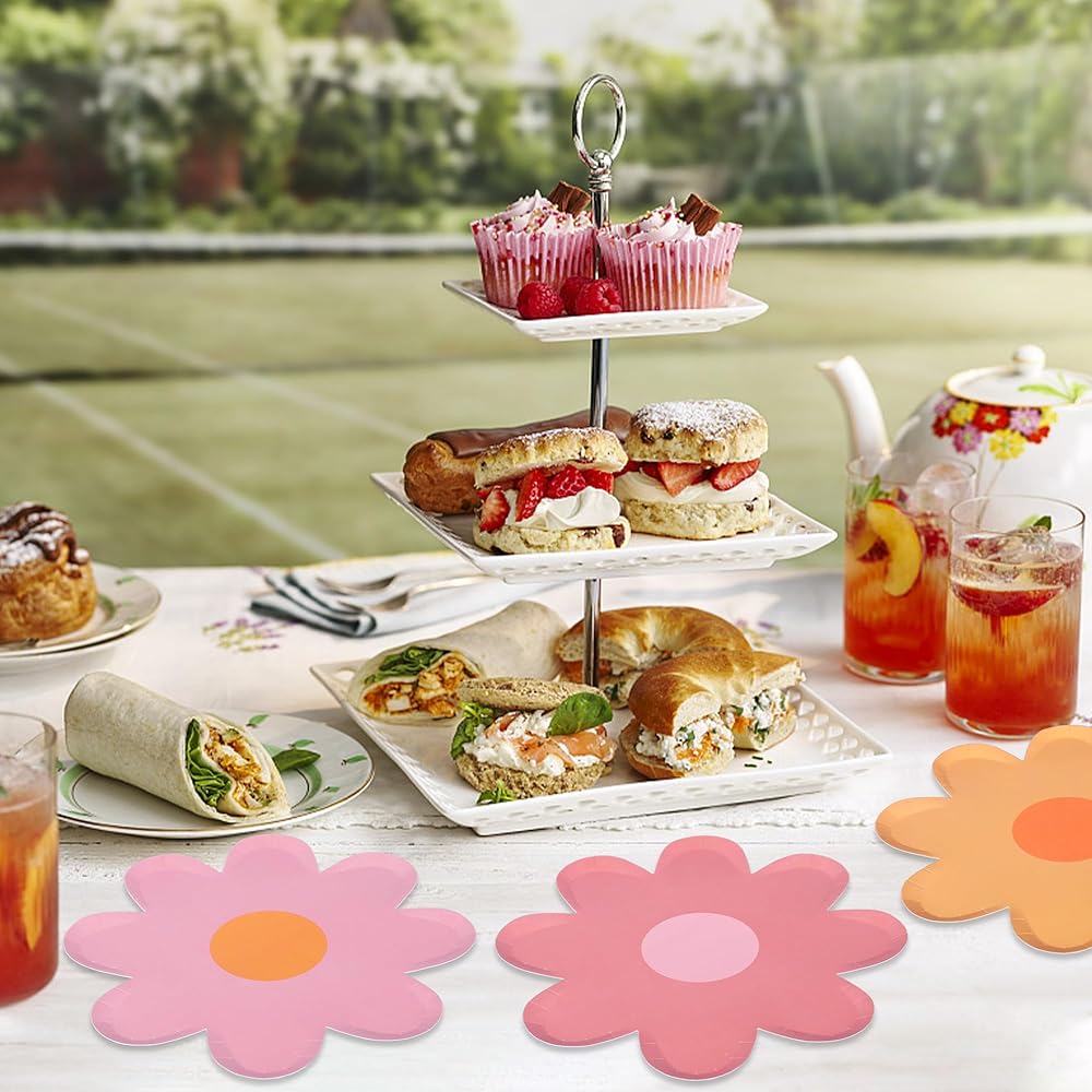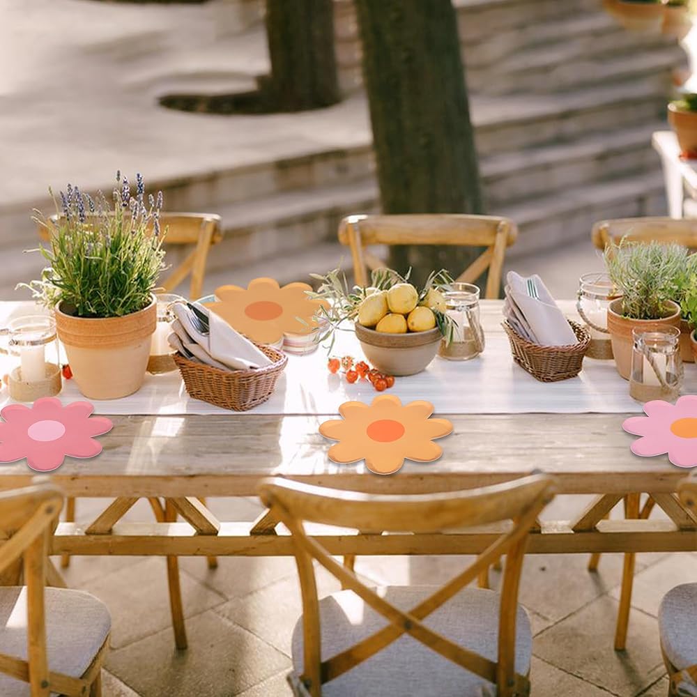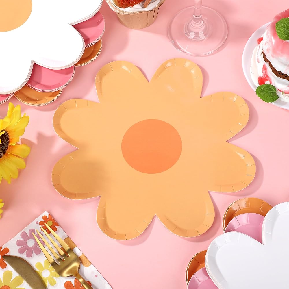 Boho daisy design: these daisy dessert plates are all designed in daisy flower shape, designed in groovy boho style, bright color and unique design, full of boho atmosphere, delicate and eye-catching, can leave your guests a deep impression during the party time.