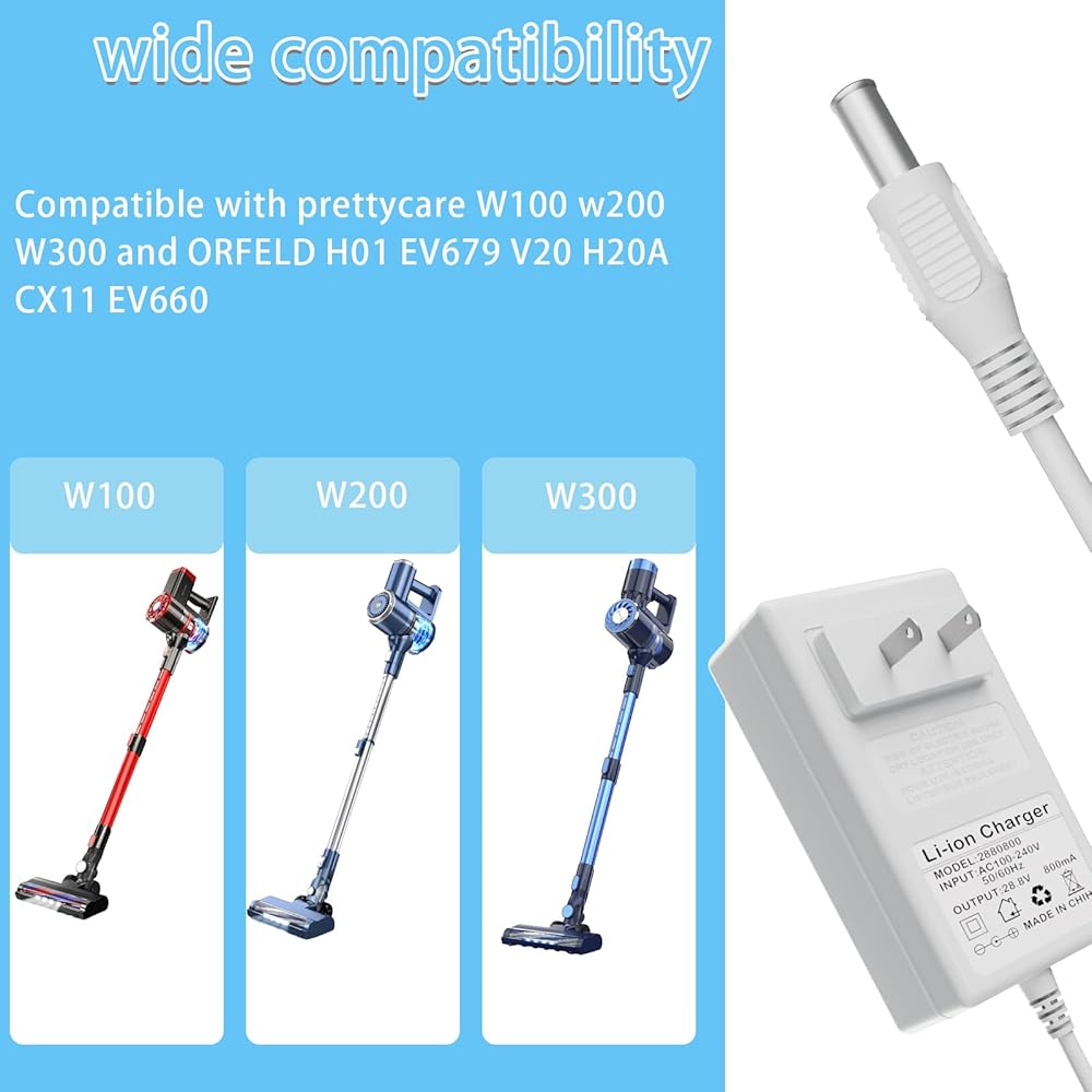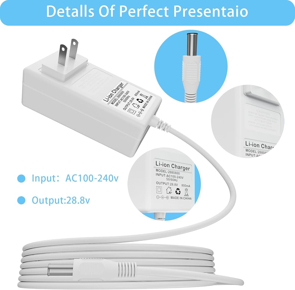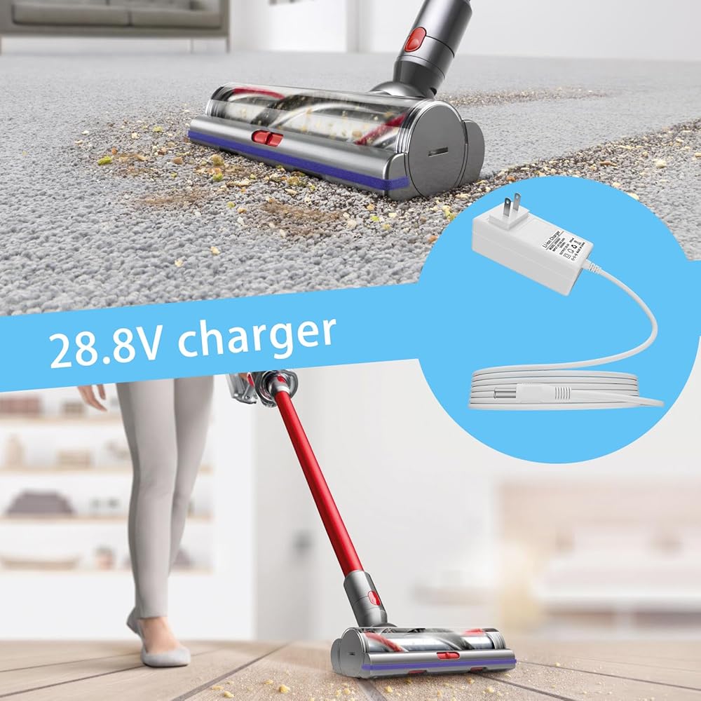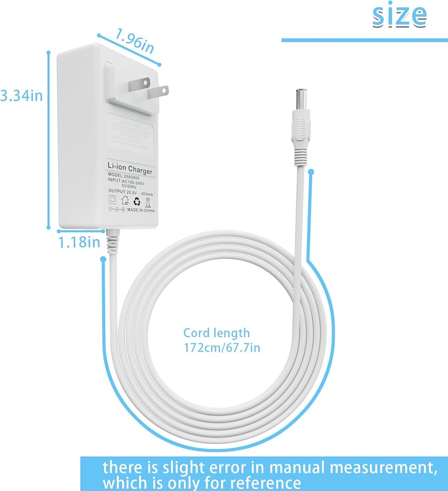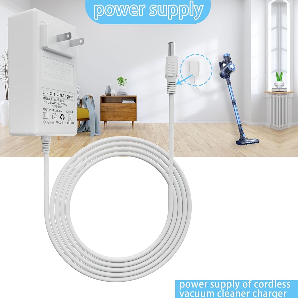 مواصفات الطاقة: نطاق الإدخال - 100 - 240 فولت، الحد الأقصى للإخراج - 28.8 فولت 800 مللي أمبير. يبلغ طول سلك مكنسة القرش البديلة 5.9 قدم، مما يمنع مشكلة وجود سلك قصير لا يتصل بالمنفذ.