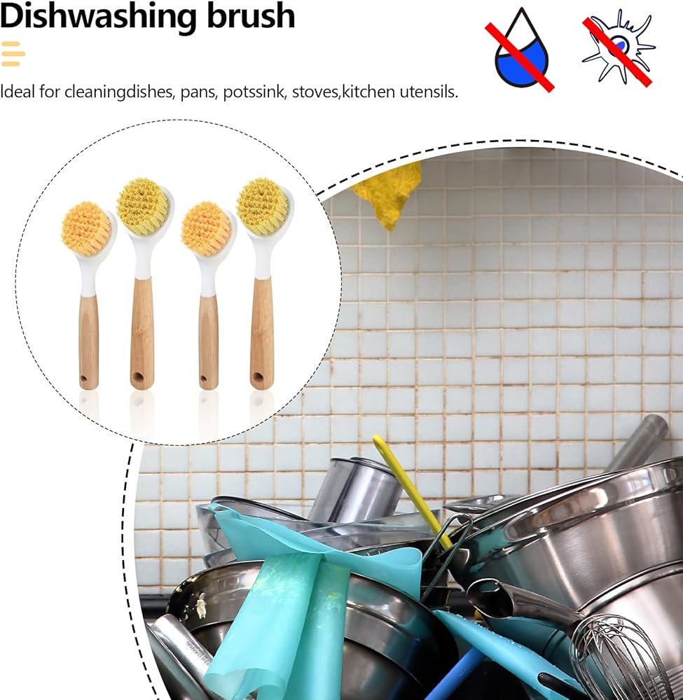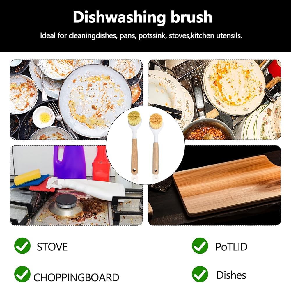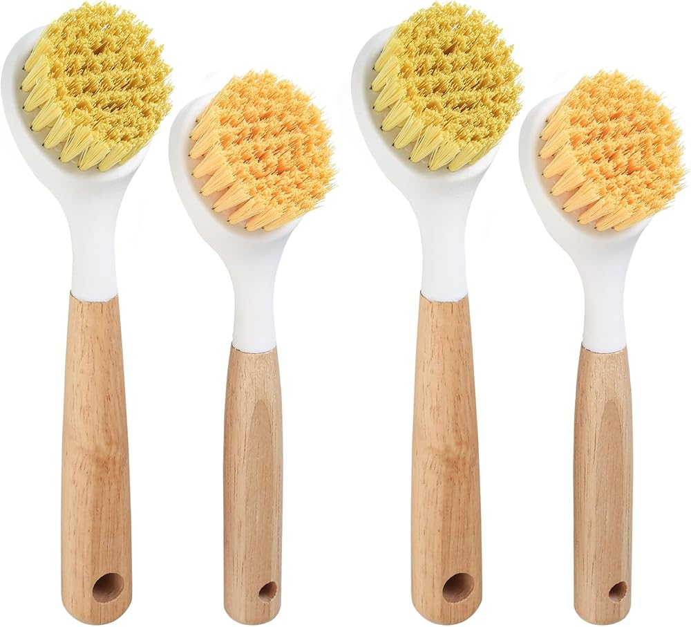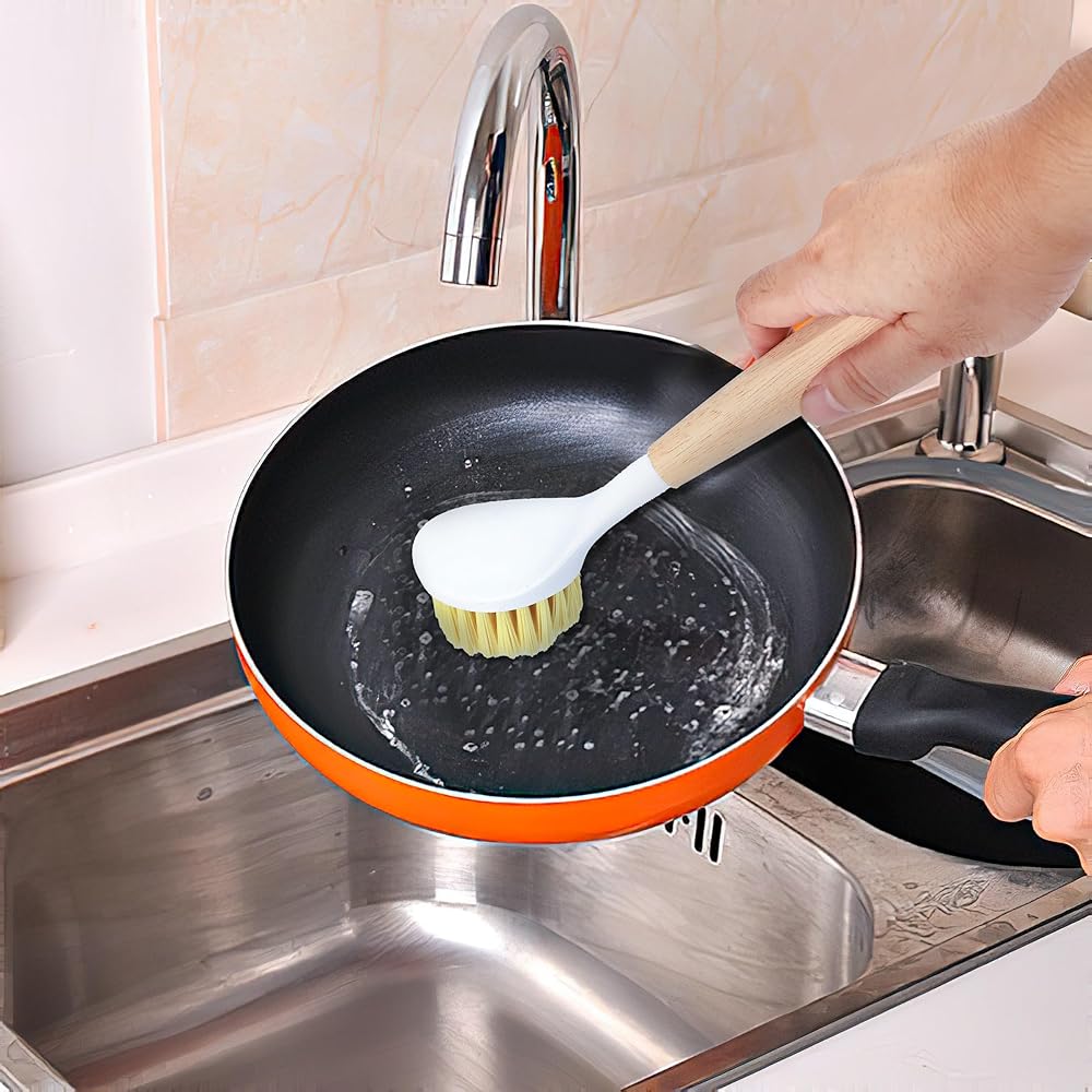 ✅ Our kitchen dish scrubber brushes with handle are made of high-quality wood, sisal, and plastic materials. The bristles are elastic, not easily deformed, moderately soft and hard, and durable.