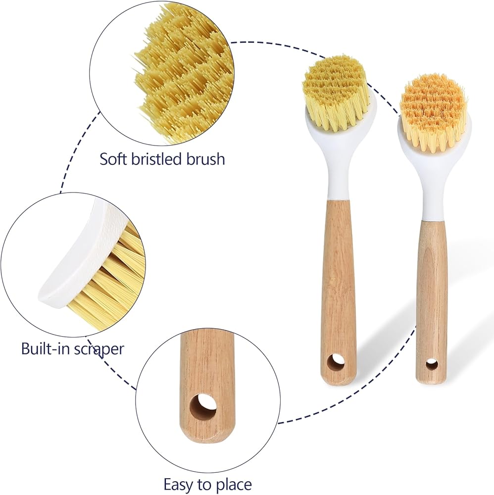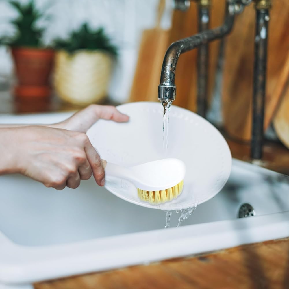 What are the advantages of our scrub brush for cleaning dishes?