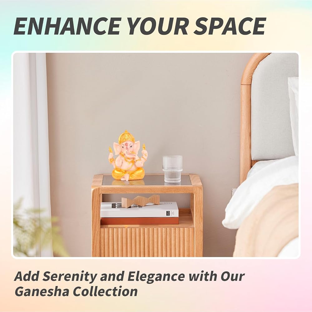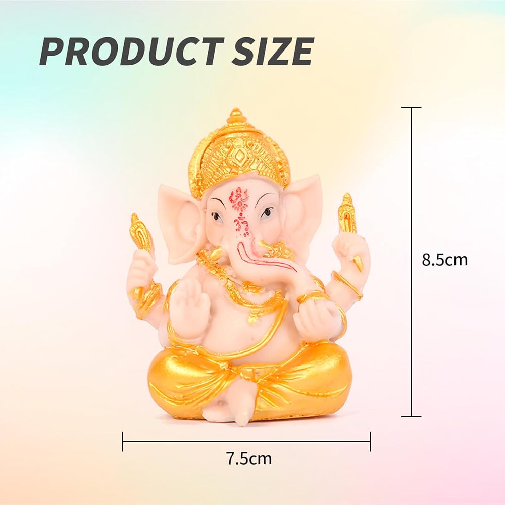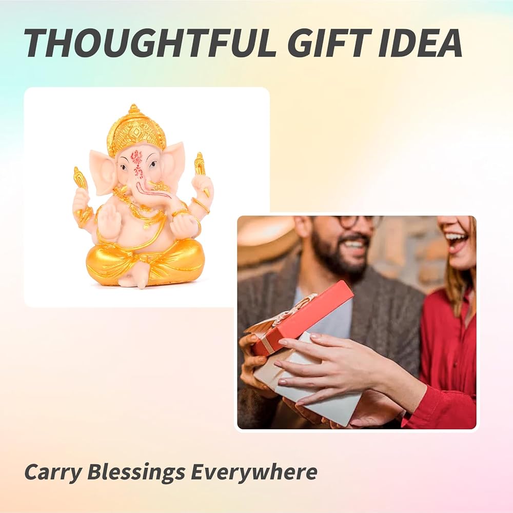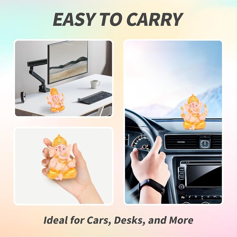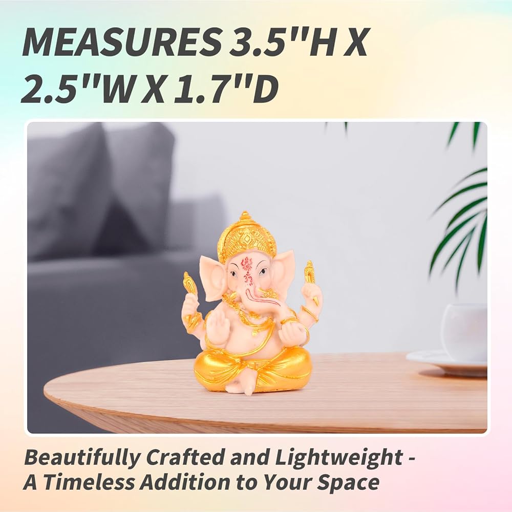Measuring 3.5 inches in height, 2.5 inches in width, and 1.7 inches in depth, this Ganesha idol is not only a symbol of spiritual significance but also a work of art. Its lightweight and compact design allow for easy placement in various spaces, whether it's adorning your car dashboard, enhancing your desk decor, gracing your bedside table, or becoming a part of your home altar.