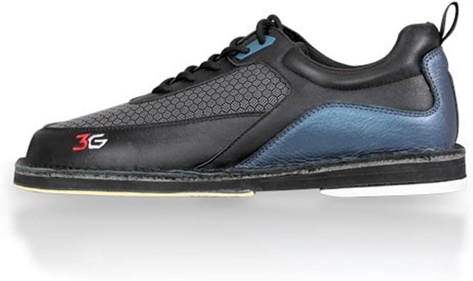 The 3G Mens Tour HP is making waves on the lanes! This high performance shoe is designed with a hexagon shaped pattern to provide ultimate breathability and durability night after night. The improved Tour Outsole features 50% larger EVA wedge which gives a gradual increase toward the heel producing improved postitioning for your slide. The Authentic Buckskin slide frame offers consistency and quality in addition to an improved rubber traction sole. Right Hand Color: Black/Blue High performance Hexagon shaped construction for breathability durability Authentic Buckskin slide frame Improved rubber quality on the traction shoe Interchangeable slide sole heel (additional soles not included)