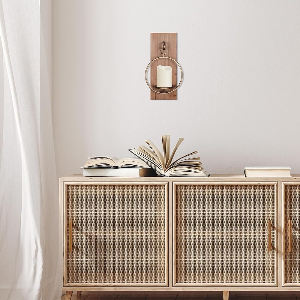 Our Wood and Metal Wall Sconce boasts a sleek and sophisticated design that complements both modern and modern farmhouse decor styles. The perfect fusion of metal and natural wood creates an eye-catching accent that elevates the overall look of any room. Crafted with precision, this wall sconce features a stunning combination of brass and natural wood finishes. Add an LED candle for a touch of warmth to create that cozy atmosphere.