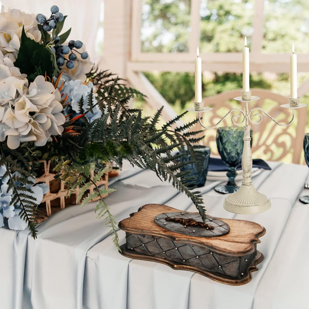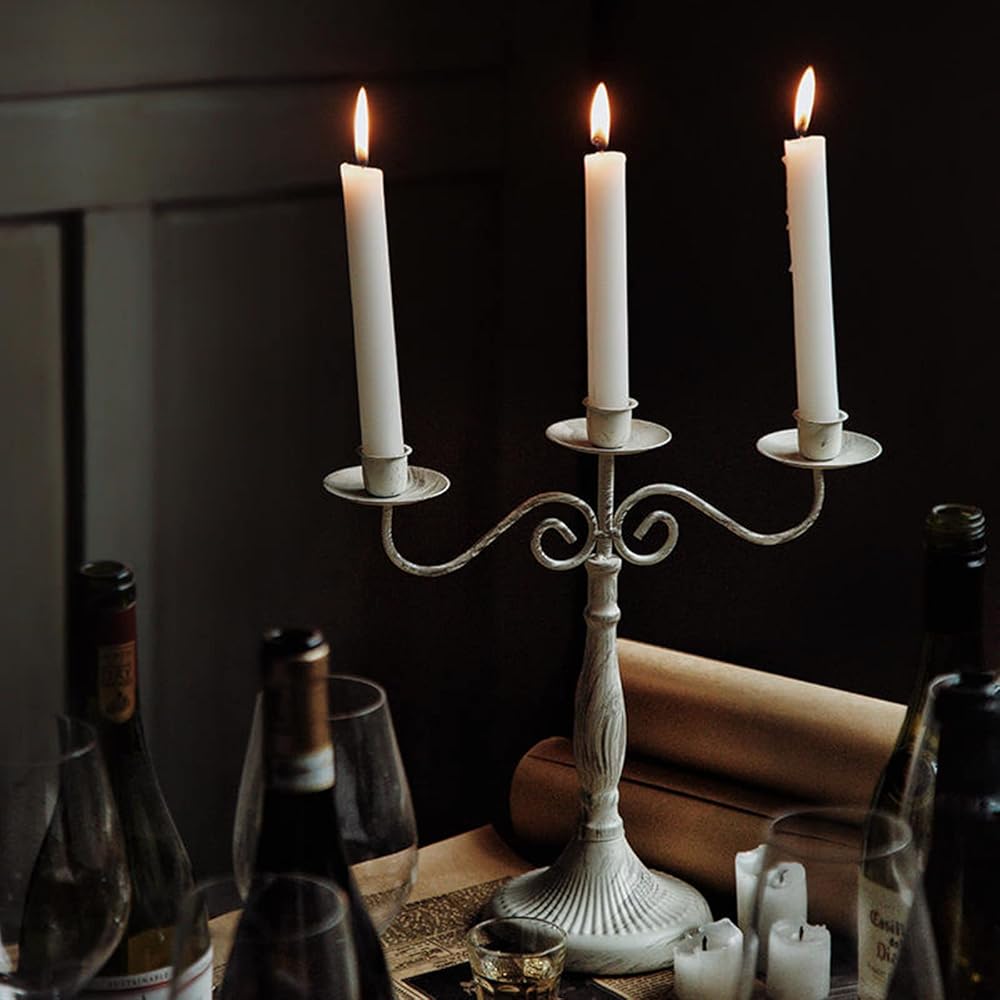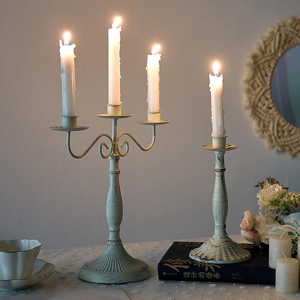 البناء الصلب: حوامل الشموع هذه مصنوعة من الحديد الزهر الثقيل الذي يوفر قوة ومتانة لا مثيل لها. لمسة نهائية مطلية ريفيًا تعطي إحساسًا عتيقًا. ببساطة امسحها بقطعة قماش جافة.