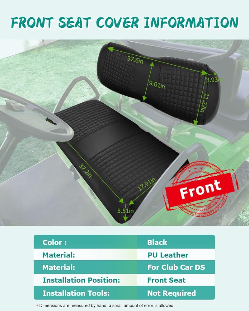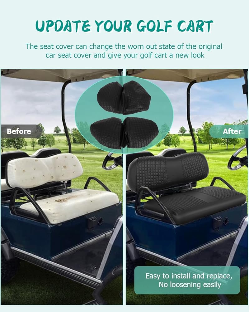 أغطية مقاعد عربة الجولف لوسادة المقعد الأمامي للسيارة Club Car DS، مصنوعة من جلد الفينيل، أشرطة قابلة للتعديل وإبزيم قابل للسحب، لا تحتاج إلى دباسة - أسود