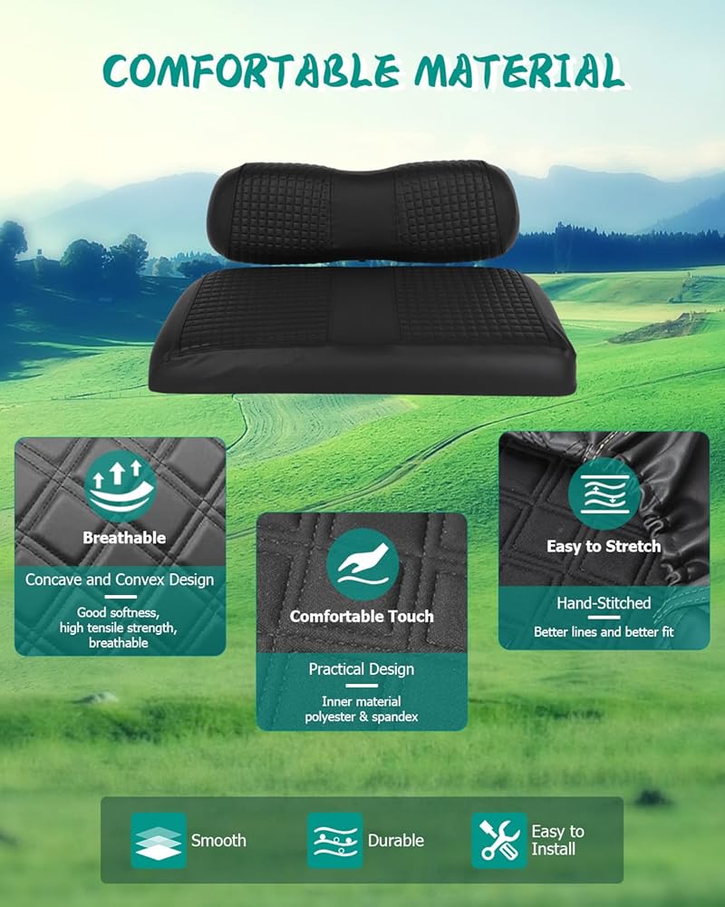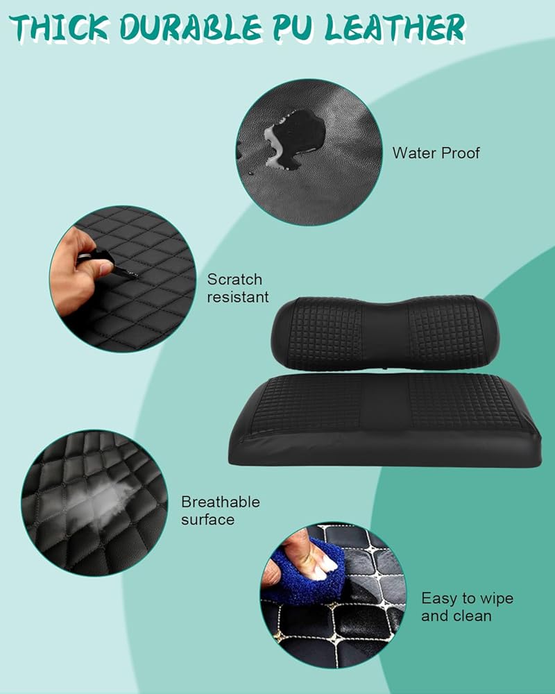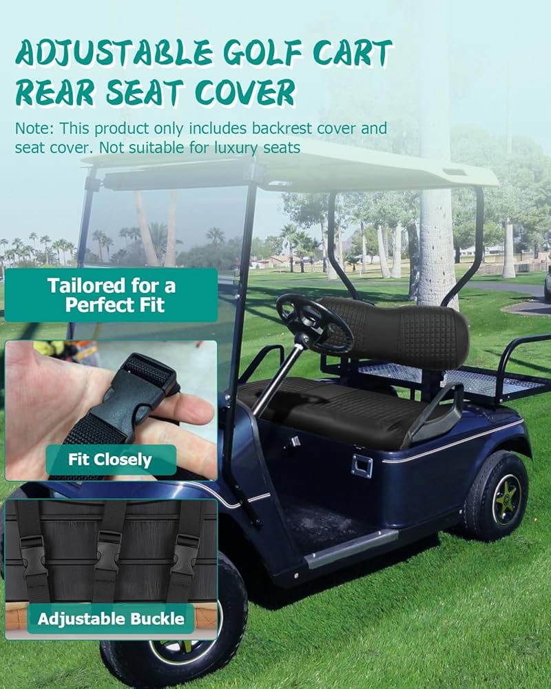 [تصميم أنيق ومادة مريحة] - يتميز غطاء مقعد عربة الجولف الخاص بنا بجلد الفينيل المتين عالي الجودة. يجمع غطاء المقعد الخلفي لعربة الجولف مع المتانة والأناقة التي تجلب لك أقصى قدر من المتعة والراحة أثناء ركوب الجولف.