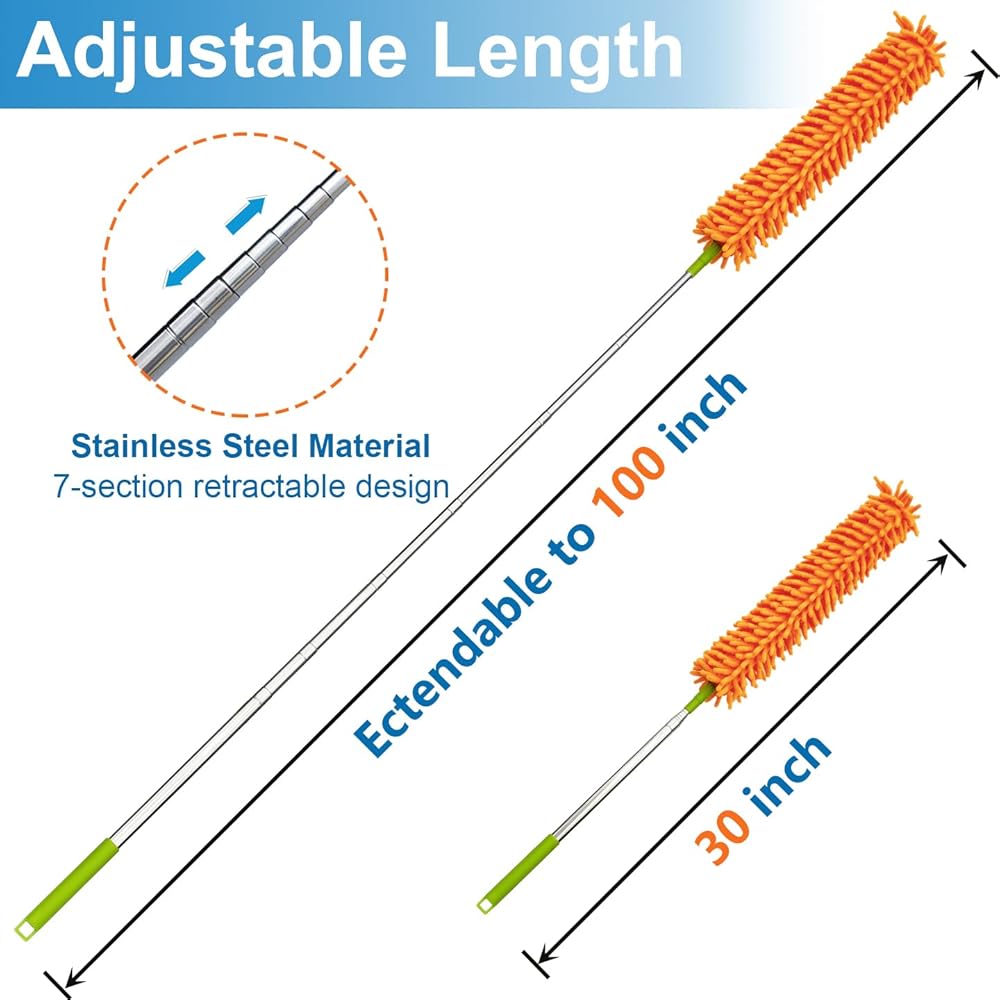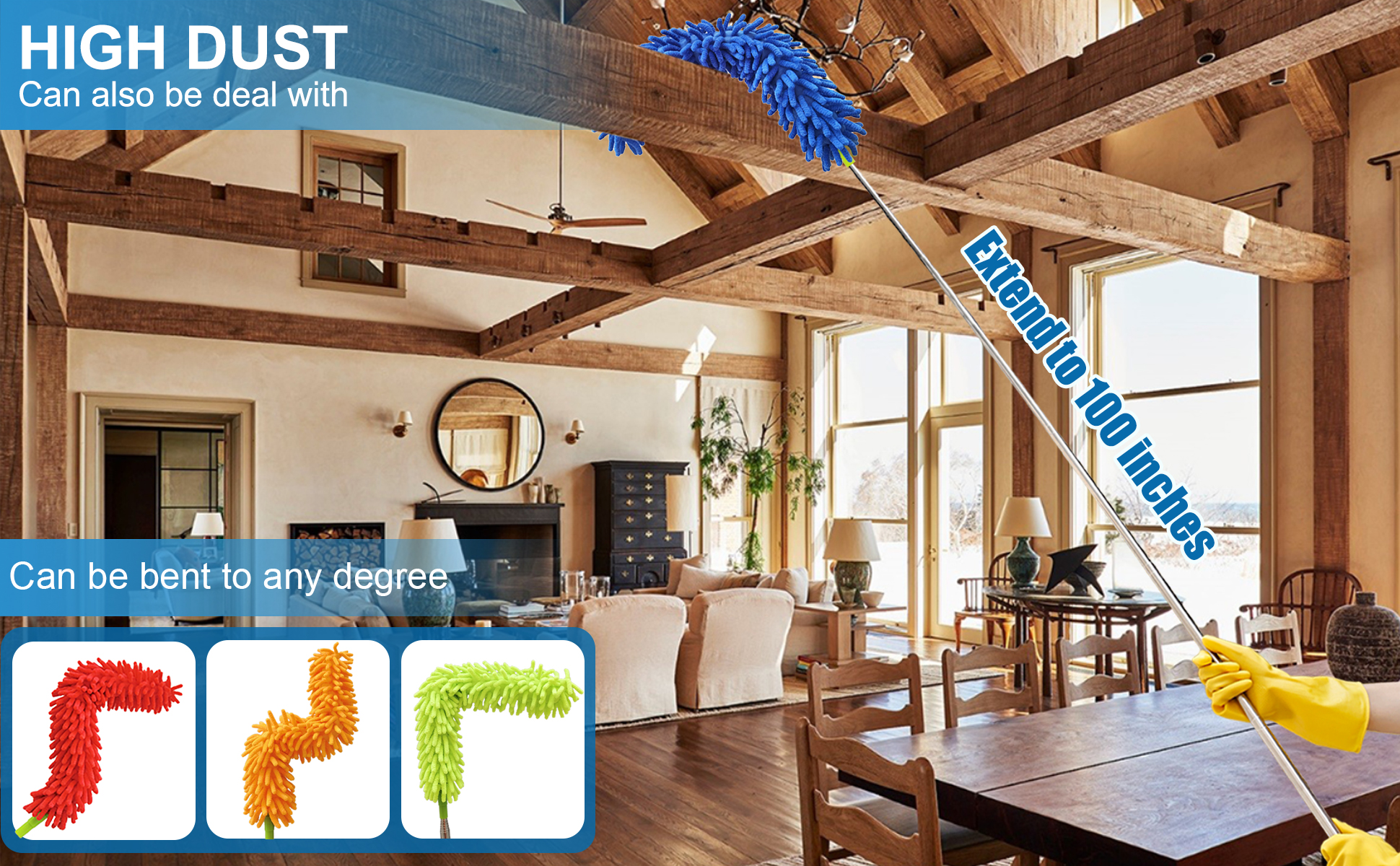 【عمود طويل للغاية】: يبلغ طول المنفضة 76.2 سم، ويمكن أن تمتد إلى 100 بوصة. مما يجعل من السهل تنظيف الغبار المختبئ في الزاوية العالية.