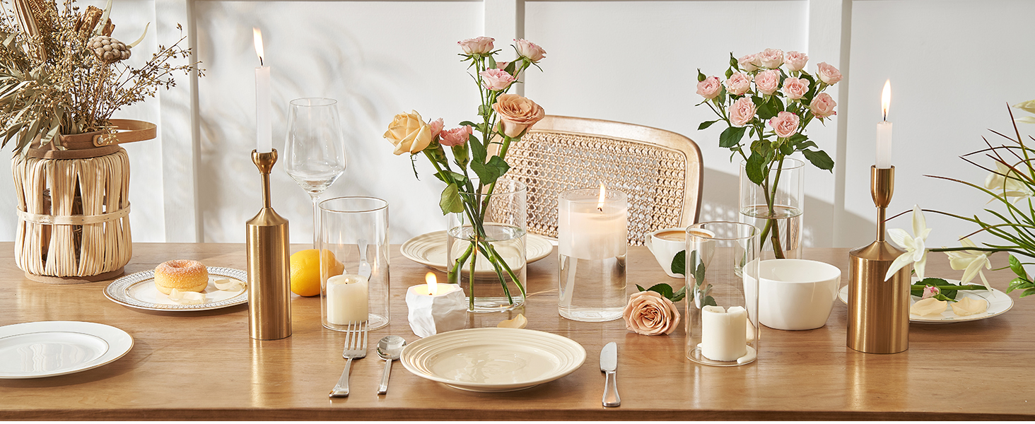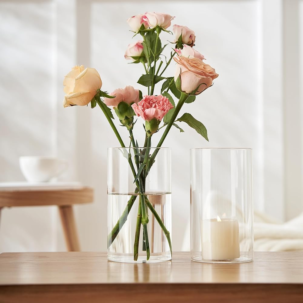 【مناسبات قابلة للتطبيق】تعمل هذه المزهريات الأسطوانية بشكل مثالي كقطع مركزية للطاولة، وحاملات شموع زجاجية وديكورات الزفاف. على الرغم من أنها شائعة، إلا أنها الديكور الأكثر فعالية لجميع المناسبات تقريبًا، مثل المطاعم والحدائق وحفلات الزفاف والحفلات وديكور المنزل.