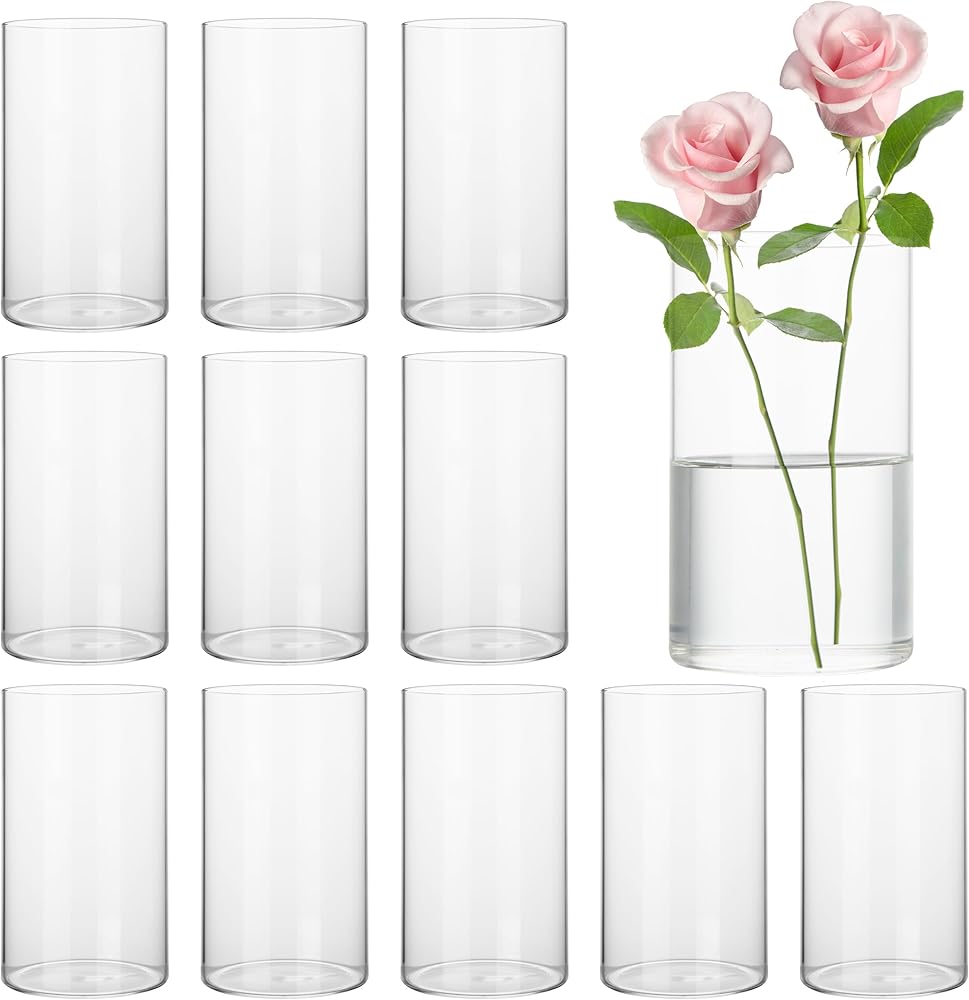 【ما حصلت عليه】سوف تحصل على 12 عبوة من المزهريات الزجاجية الشفافة بقطر 8.89 سم و15.24 سم طول.
