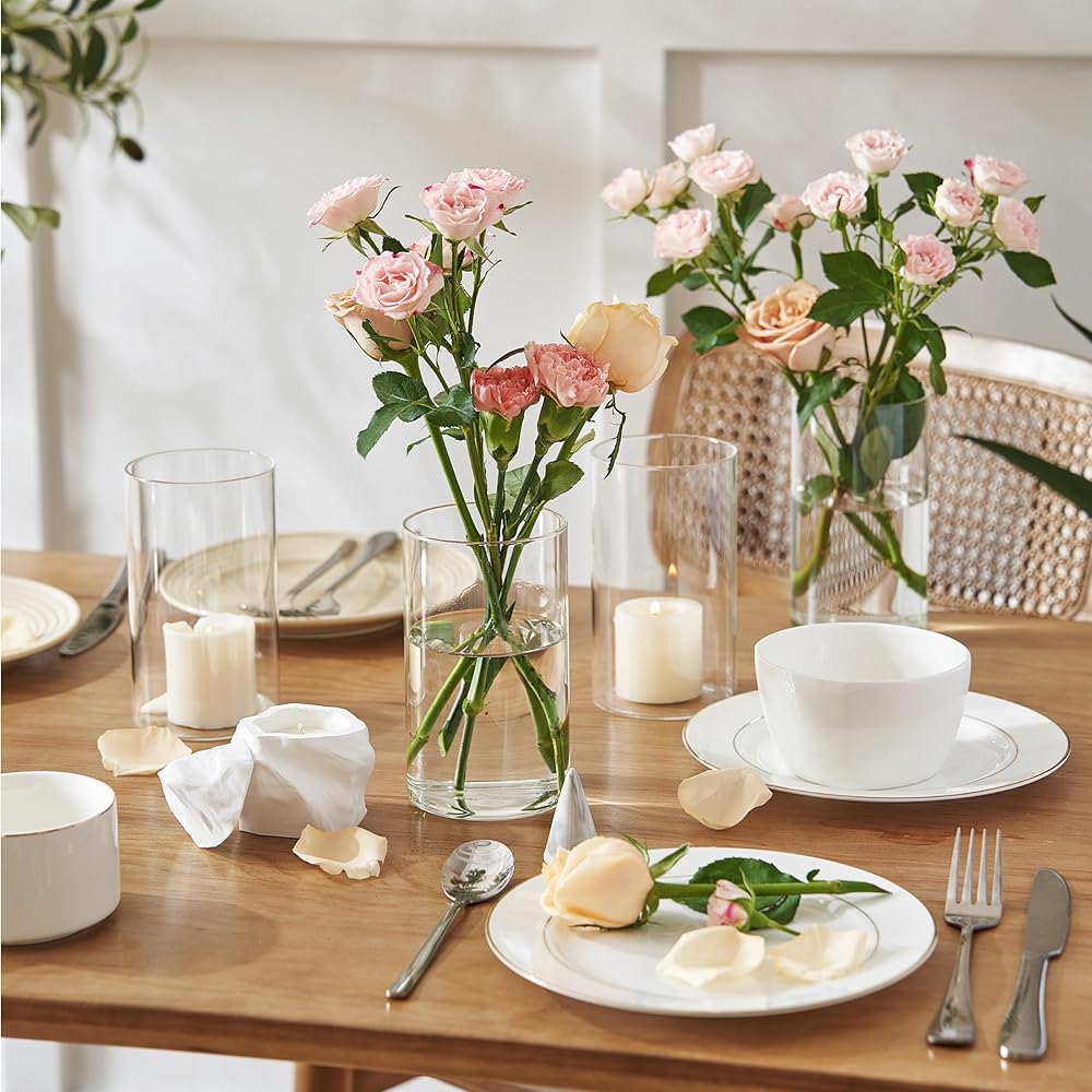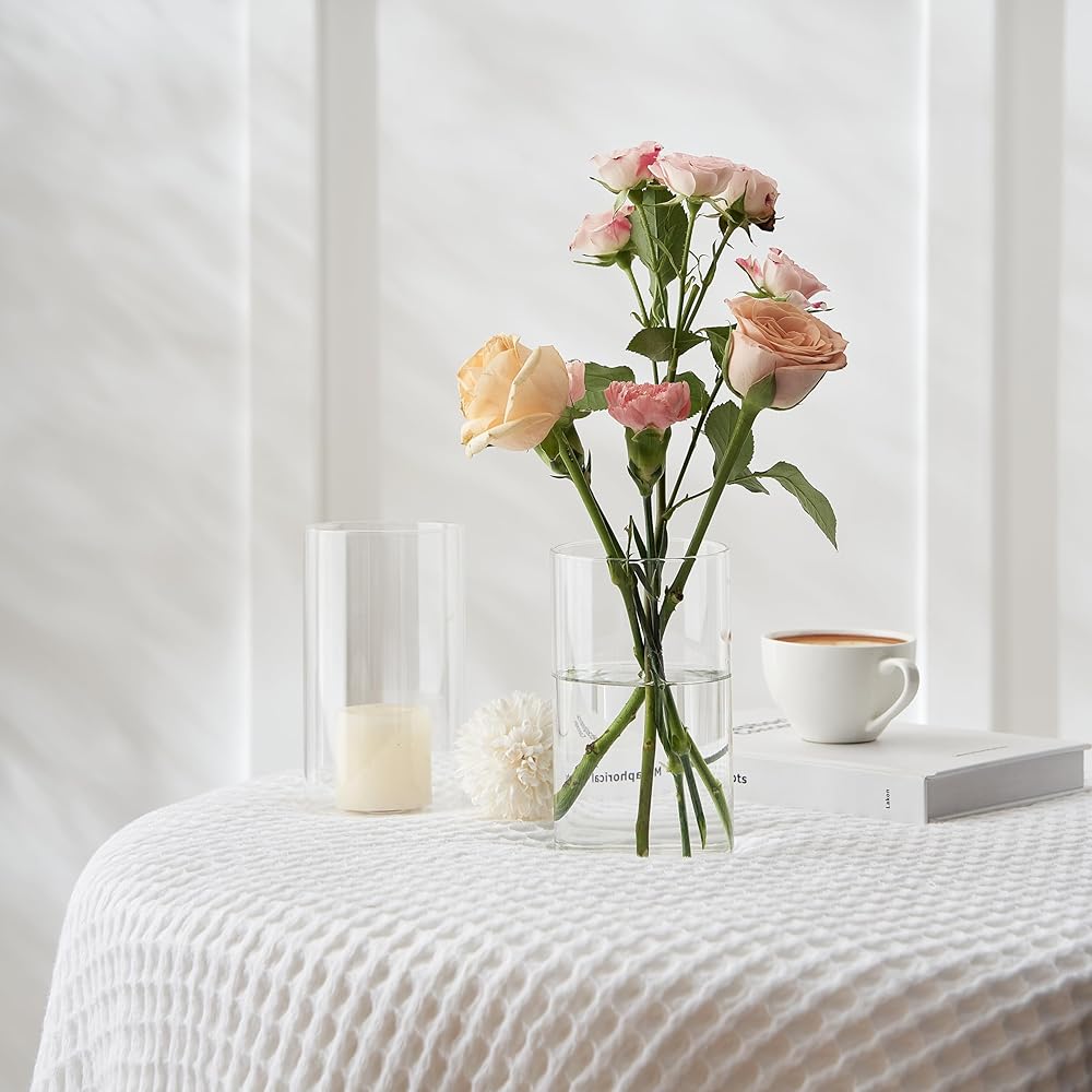 12 قطعة من المزهريات الأسطوانية الزجاجية الشفافة من Jelofly للقطع المركزية بطول 15.24 سم مزهرية زجاجية على شكل إعصار حامل شموع عائمة للمنزل وحفلات الزفاف وديكور الطاولة