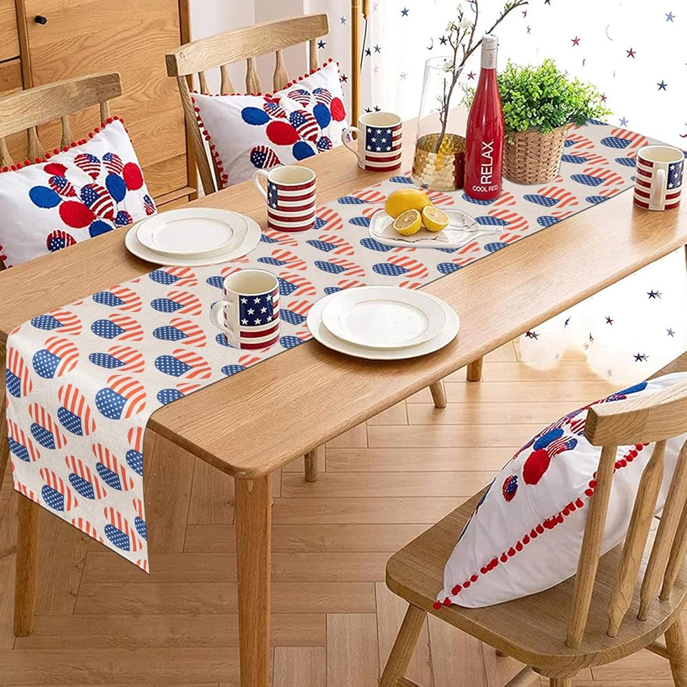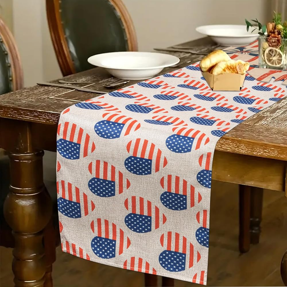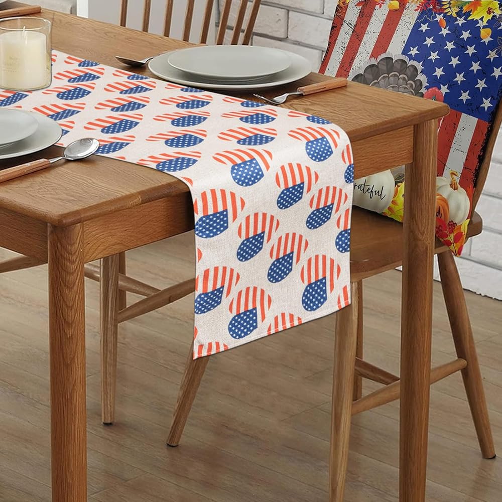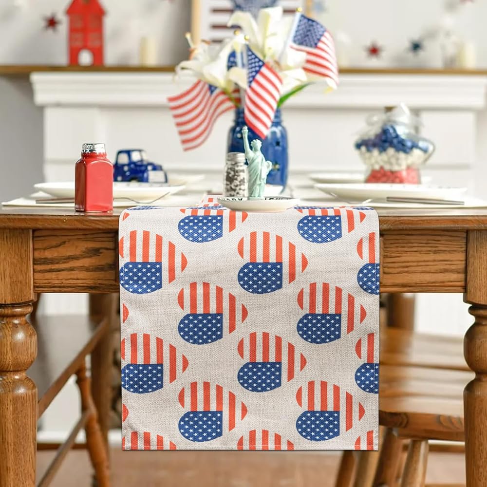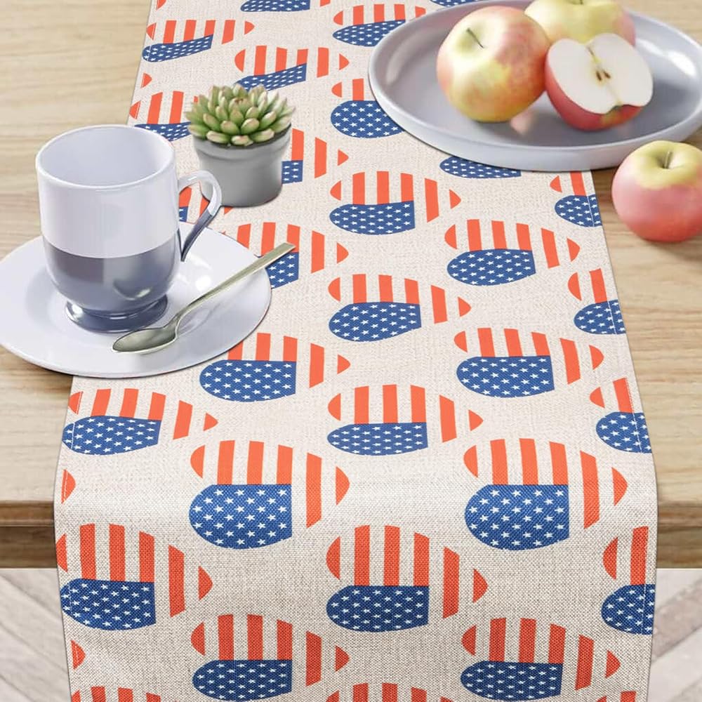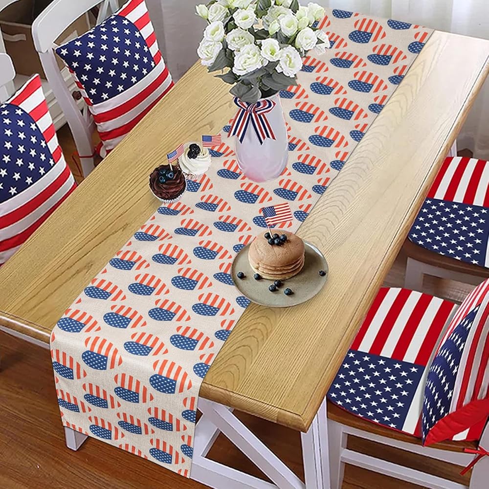 الرابع من يوليو شريط ونجمة العلم الأمريكي الجدول عداء عيد الاستقلال الوطني عطلة المطبخ طاولة الطعام الديكور لديكور المنزل الطرف (13x72 بوصة)