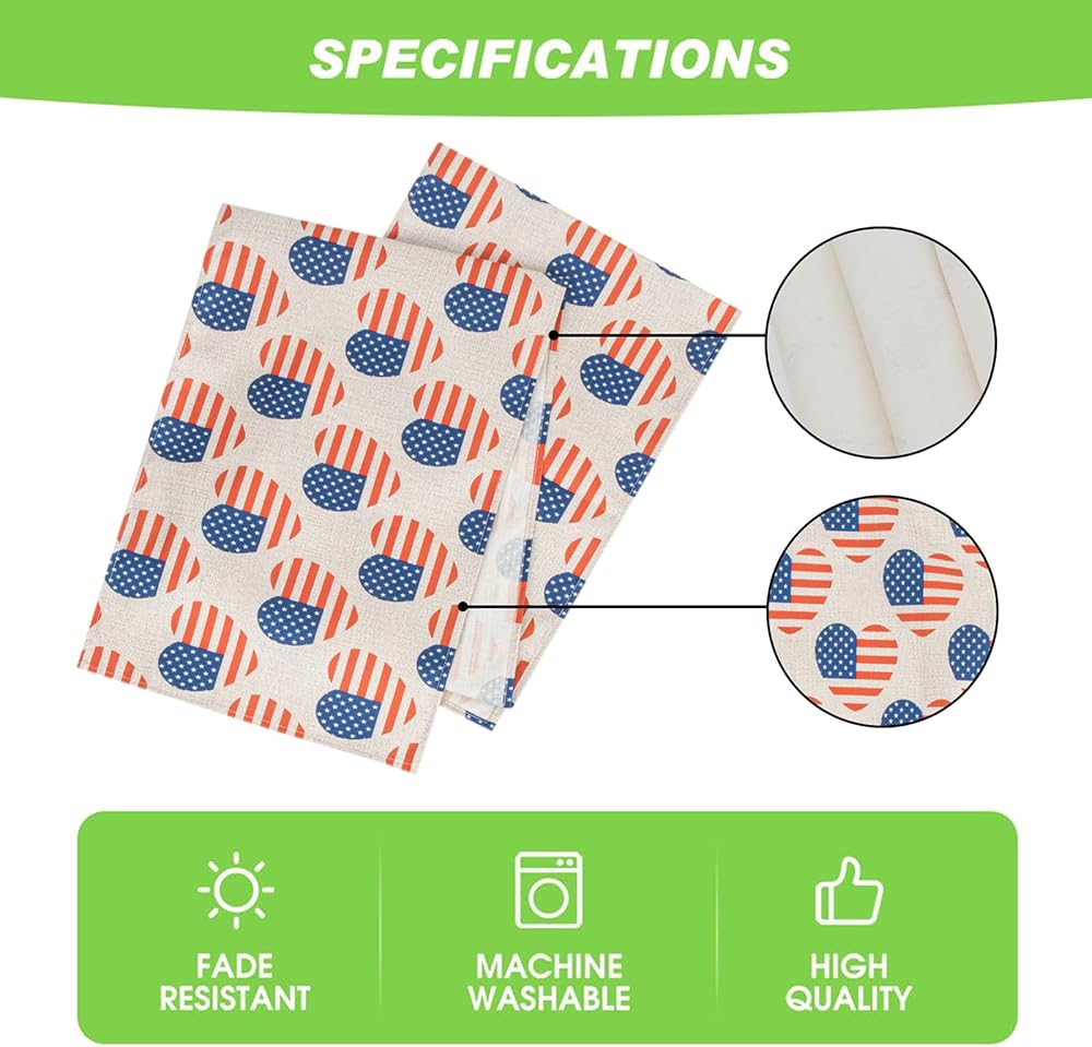 • 【ديكور المنزل في الرابع من يوليو】- ديكور الطاولة الصيفي هذا مثالي لديكور الرابع من يوليو، والديكورات الداخلية والخارجية، وديكورات المطبخ، وديكورات الربيع، والاستخدام اليومي، وحفلات الزفاف، وأحداث تقديم الطعام، وديكور المنزل الريفي، وديكور بيت المزرعة، وحفلات عشاء العطلات، وأعياد الميلاد وأي شيء مناسبة أخرى. سوف تثير مفارش الطاولة المصنوعة من الخيش إعجاب ضيوفك وستحصل على عشاء مثير للإعجاب.