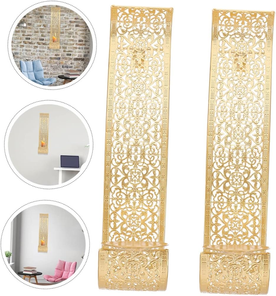 2 قطعة حامل شموع مثبت على الحائط ديكور ذهبي عمود حامل شموع ديكور للرف شمعة عتيقة شمعدانات جدارية أضواء حائط شمعدان مجموعة من حامل شموع مثبت على الحائط LED