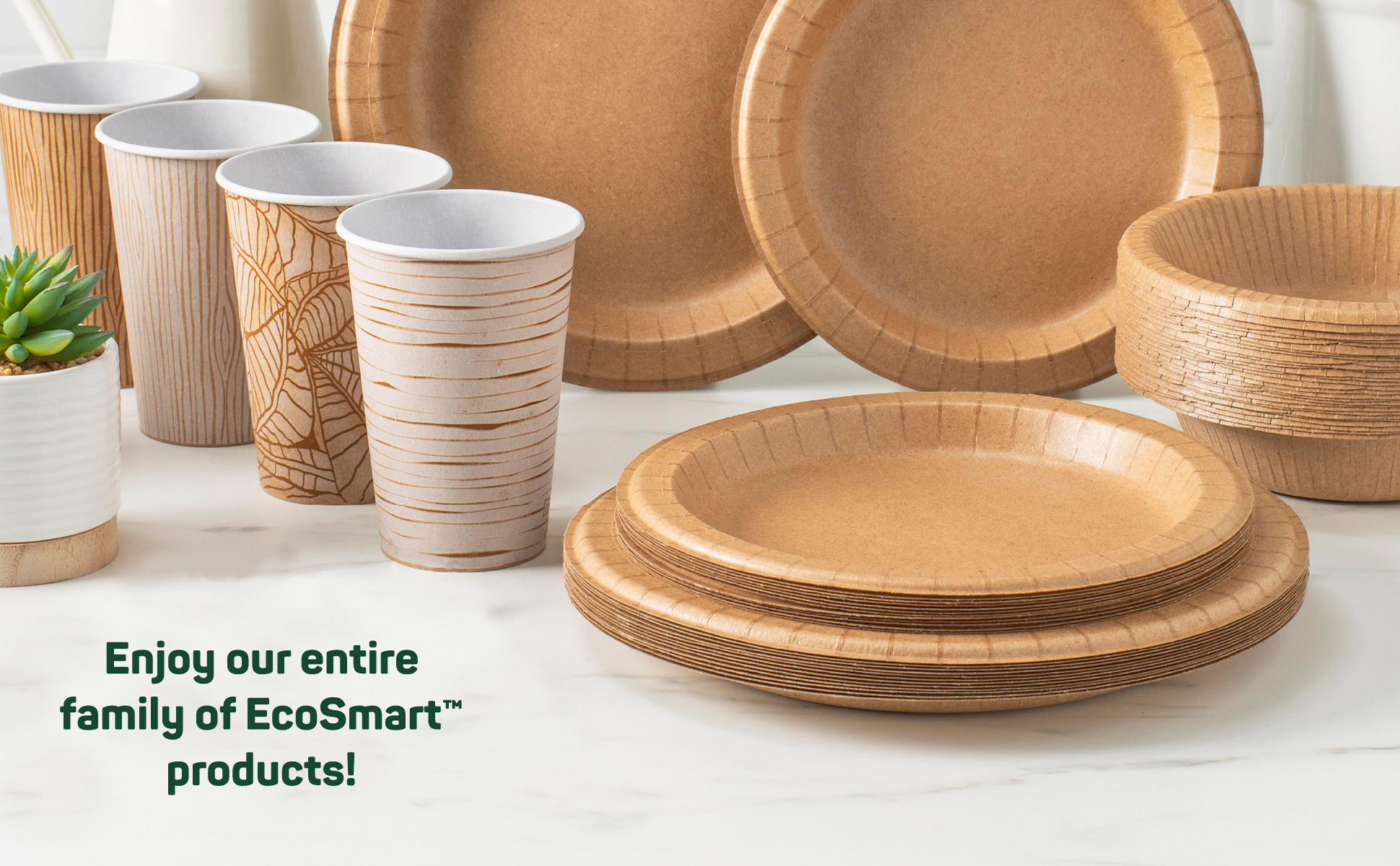 Ecosmart disposable brown paper cups are made with 100% recycled fiber for a sustainable way to enjoy your hot or cold drinks such as coffee or tea, brought to you by the makers of Dixie.