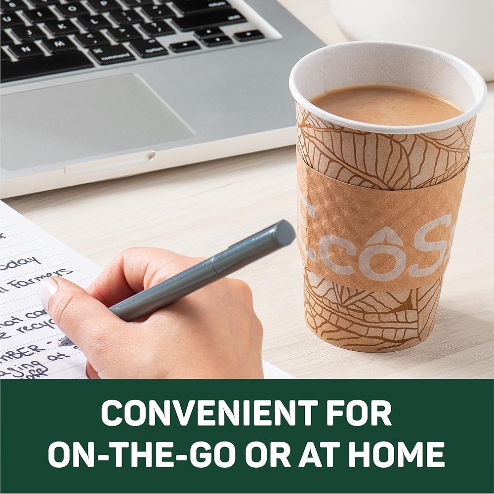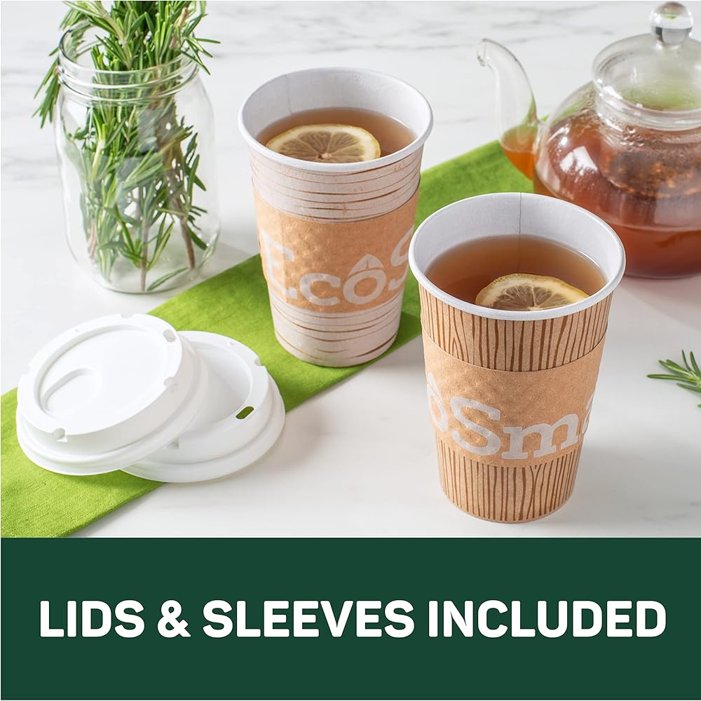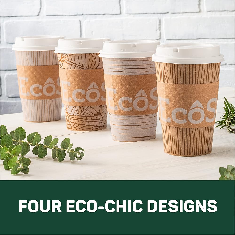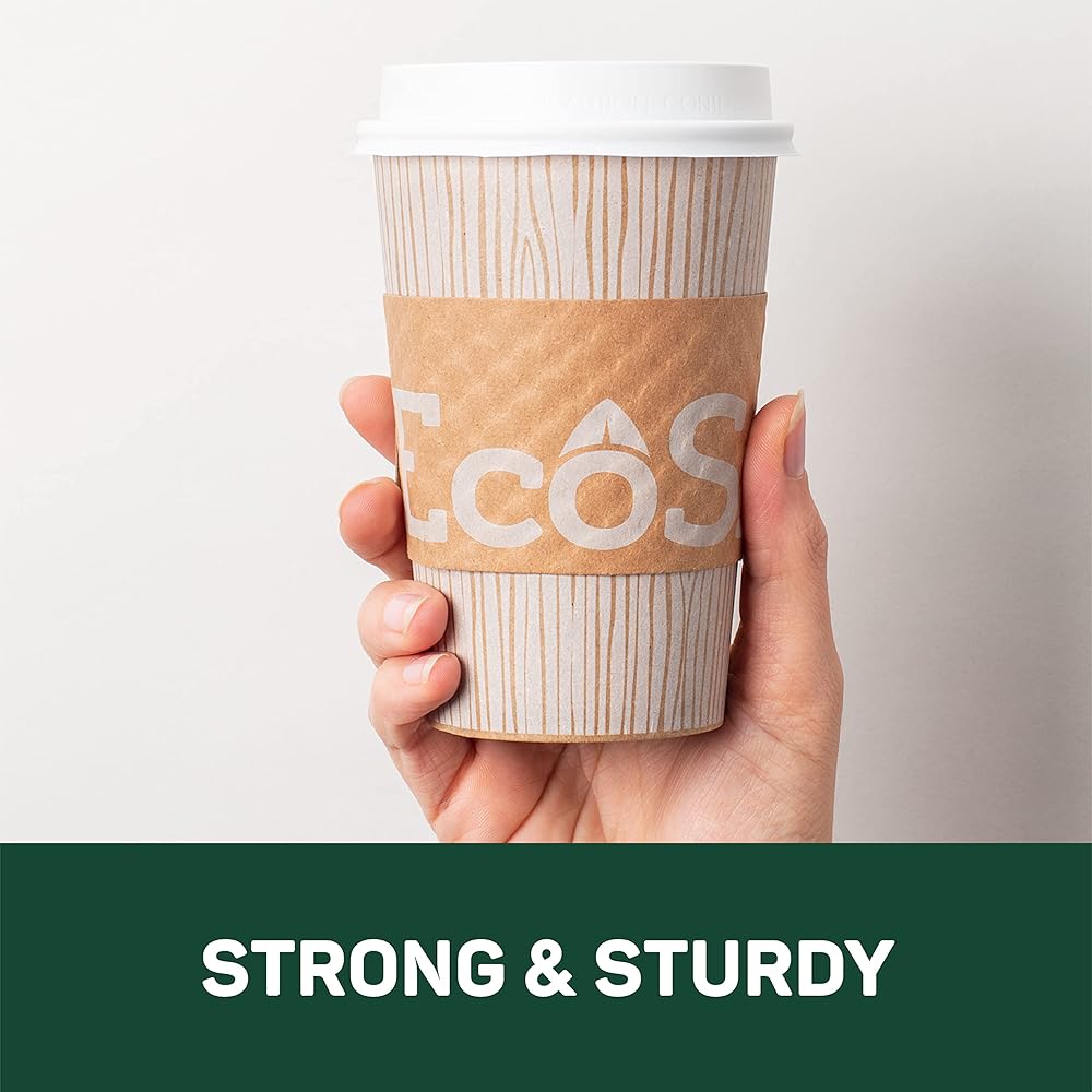 Introducing EcoSmart® paper cups from the makers of Dixie®. Our 16 oz. disposable coffee cups are made with 100% recycled fiber that gives a second life to existing resources—like used cardboard boxes! With EcoSmart®, shopping for sustainable cups is simple and affordable so you can drink on the go with confidence. Our combo pack of paper cups come with sleeves for on-the-go drinks.