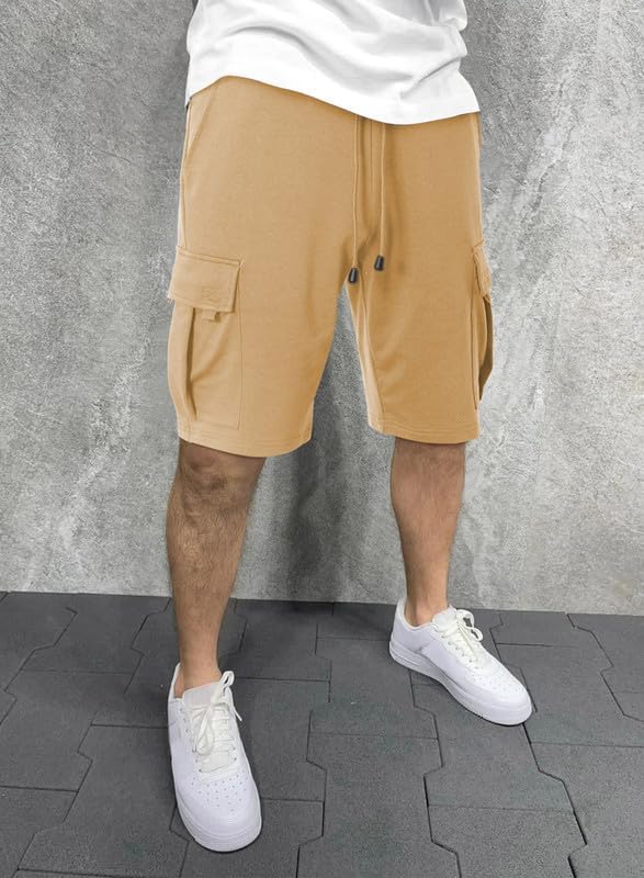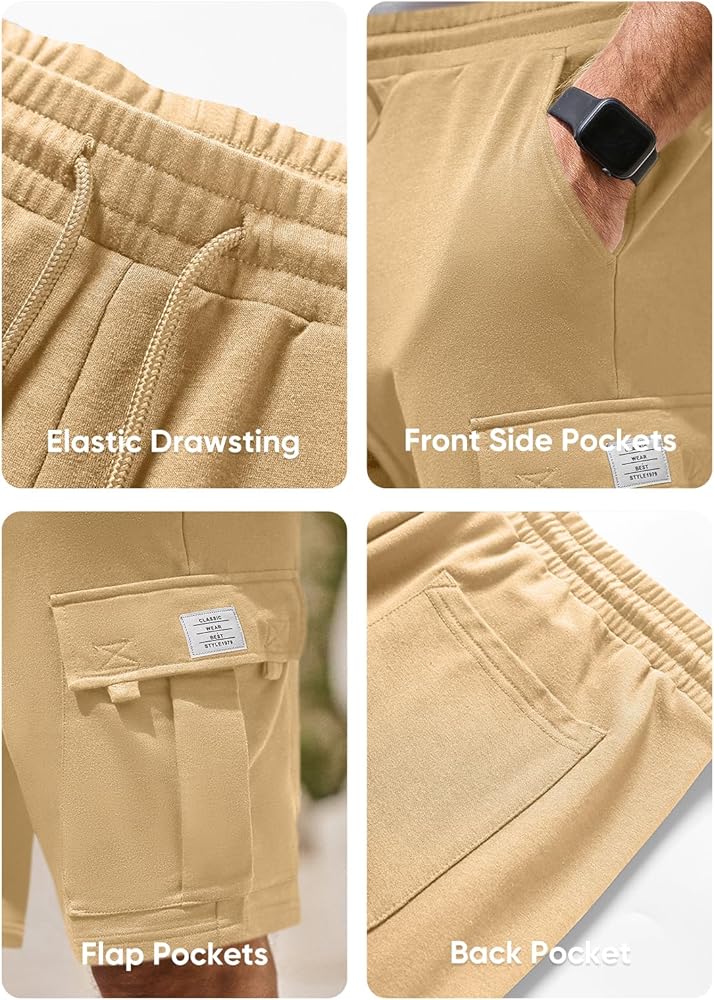 • [Spacious 5-Pocket Design for All Day Convenience] — These clothes offer ample storages with a five-pocket design that perfectly accommodates your necessities such as phone, keys, and wallet, merging functionality with style in our casual cargo sweat shorts.