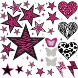 100 قطعة من ملصقات الحائط الجمالية لديكور غرفة Y2K، ملصقات قابلة للتقشير واللصق من الفينيل Mcbling من العقد الأول من القرن الحادي والعشرين لغرفة نوم الفتيات المراهقات في الكلية، ديكورات النجوم الوردية Trashy Y2k لشقة النساء.