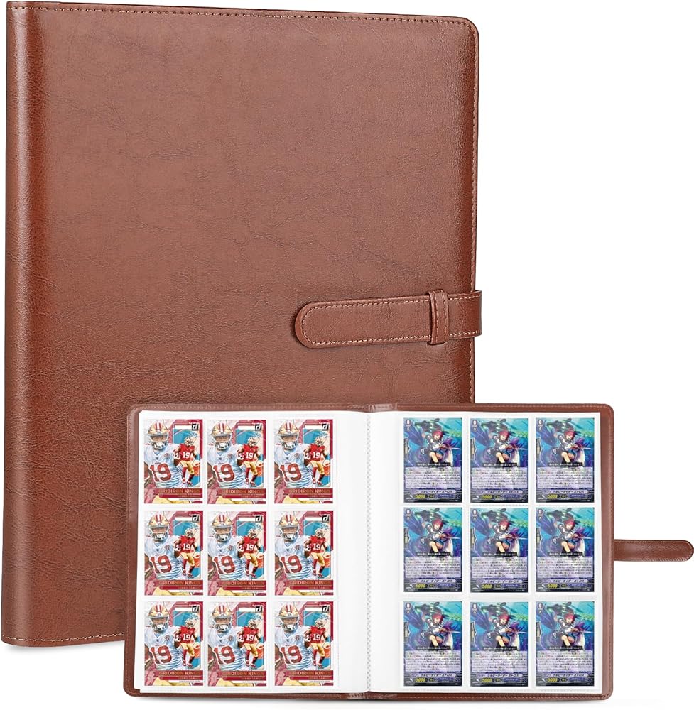 حافظة بطاقات تحتوي على 9 جيوب، حافظة بطاقات تجارية، حافظة مجموعة PU بجيب مزدوج الجوانب 360 درجة، ألبوم جامع، حافظة بطاقات لـ MTG، TCG، البطاقات الرياضية (بني)