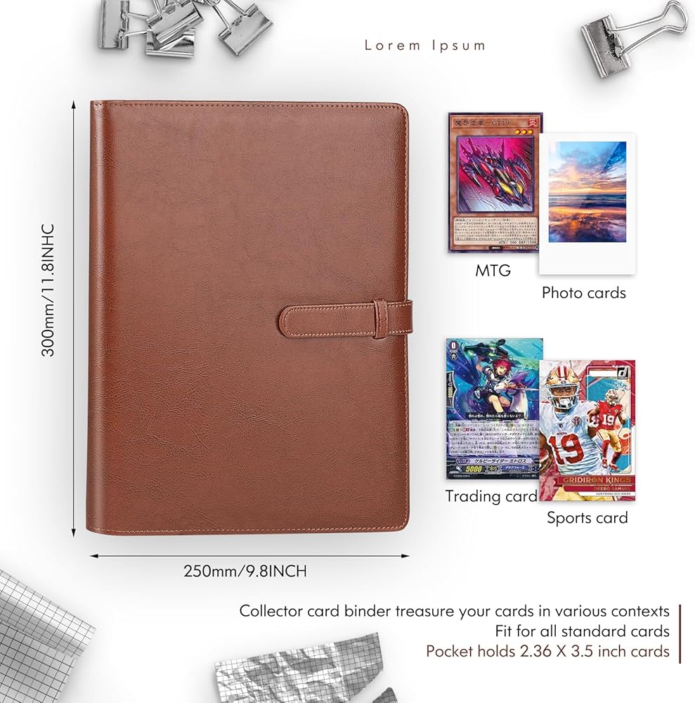 💗【Comprehensive Protection】Premium vegan leather cover and clear inner pockets are durable, can keeps cards for a long time. The design to side loading pockets and buckle strap makes trading cards storage more secure.