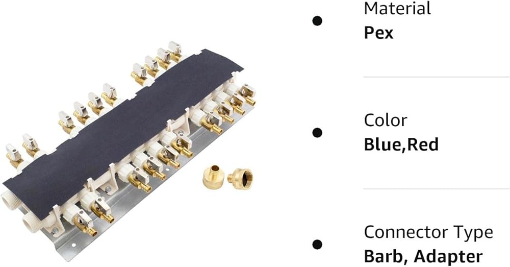 Each manifold has an equal number of hot and cold outles - Outlets are 1/2" PEX barb shut-off valves