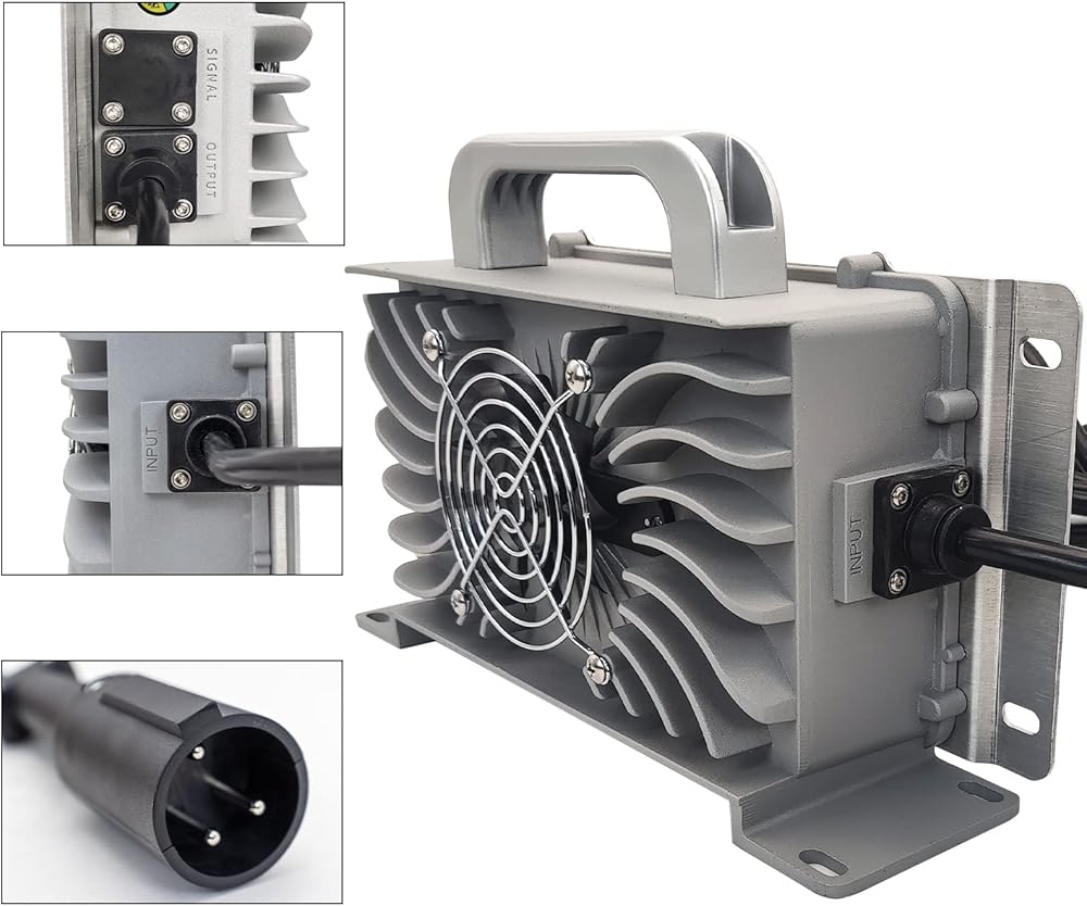 [تصميم محمول وخفيف الوزن] - تم تصميمه مع وضع الراحة في الاعتبار، الشاحن المقاوم للماء يزن 9 أرطال فقط، ويمكن أخذ الشاحن خفيف الوزن معك بسهولة. إنه مصنوع من غلاف متين من سبائك الألومنيوم المصبوب مما يوفر متانة استثنائية.