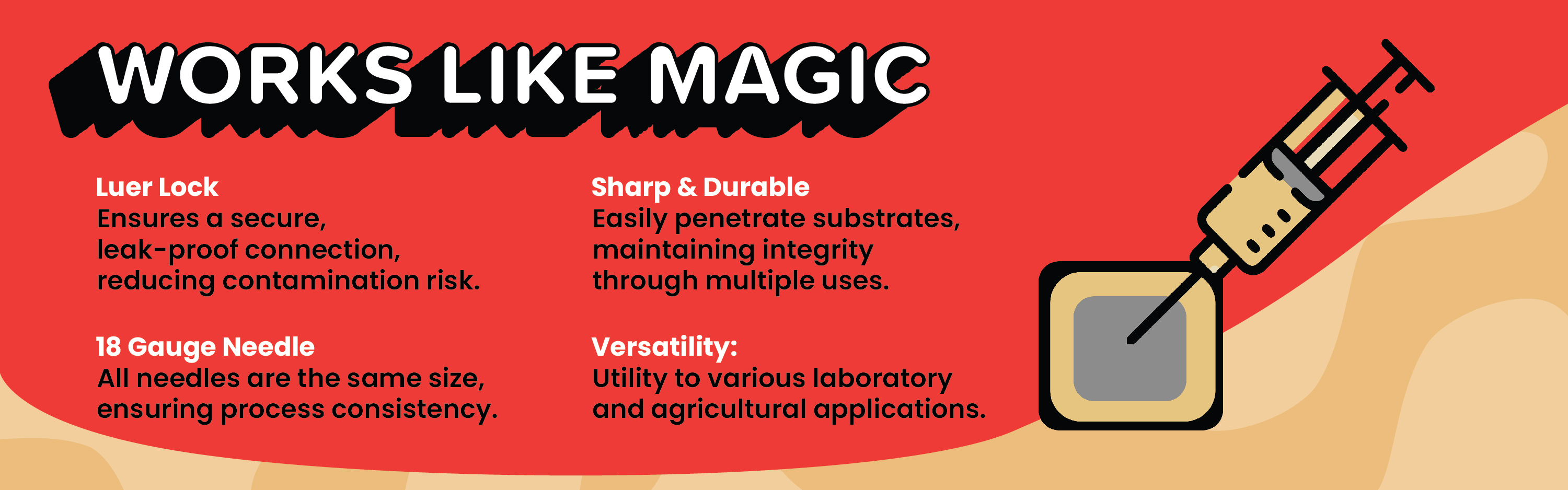 • ضمان التعقيم: يتم تعقيم إبر luer lock التي تستخدم لمرة واحدة بشكل فردي، مما يضمن بيئة خالية من المخاطر أثناء زراعة الفطر. العقم أمر حيوي لضمان نجاح نمو الفطر.