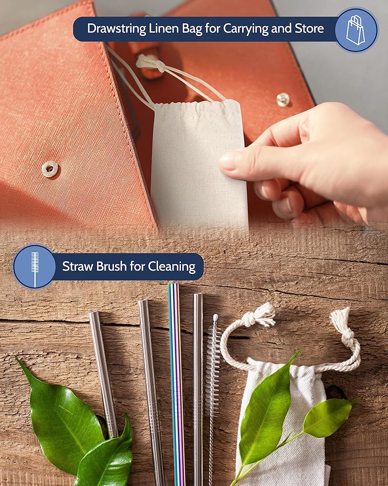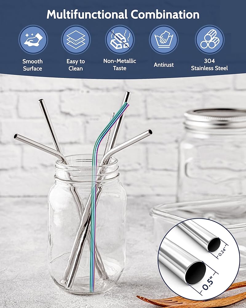 🥤🌟 High-Quality Materials: We use high-quality stainless steel to make straws, ensuring durability and not producing any odors or chemicals. The stainless steel material also has anti-rust properties, making your straw always look brand new