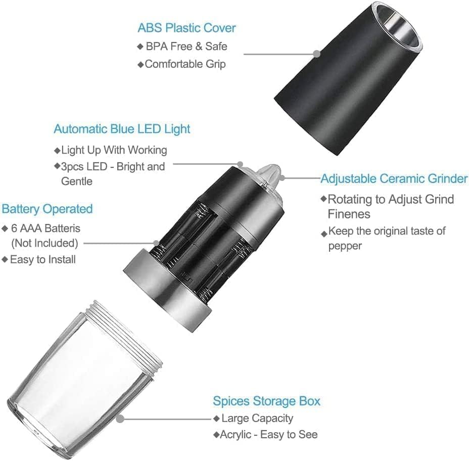 【تشغيل تلقائي】تتميز مطحنة الفلفل الخاصة بنا بتصميم متطور لاستشعار الجاذبية، ولا حاجة إلى طحن يدوي، ولا توجد أزرار للضغط، وهي رائعة للعملاء الذين يعانون من آلام اليد المزمنة. ما عليك سوى قلب المطحنة وستحصل على بهارات مطحونة طازجة. تتيح لك تفعيل توزيع التوابل المفضلة لديك بيد واحدة، بينما تكون اليد الأخرى حرة للتعامل مع مهام المطبخ الأخرى.