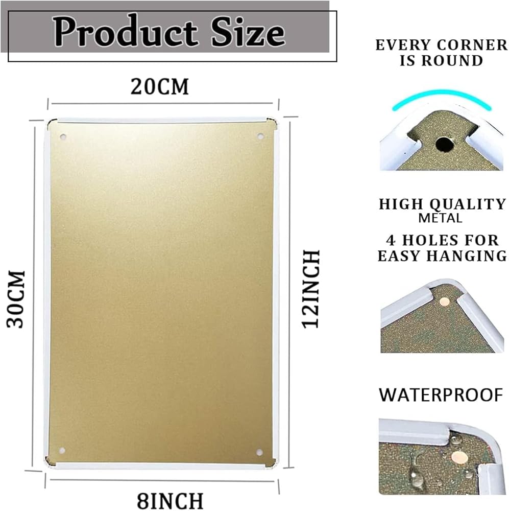 Welcome To Our Shop, We Specialize In Making Iron Tin Signs, And We Are Very Happy To Get Your Approval.I Believe Our Shop Will Meet Your Demand,You Can Find Thousands Kinds Of Ting Sign In Our Store.All Tin Signs Are A Perfect Addition To Any Area Or Room. Display Them Wherever You Choose. Indoor Or Outdoor.Plus Our Tin Signs Are Weather Resistant Enough For Use On Outside Walls, Fences And Gates. So Basically… Anywhere!Our Tin Signs Have Rolled Edges, So They Are Safe To Handle. They All Have 4 Pre-Drilled Holes In Each Sign For Easy Mounting. Simply Use Tacks, Pushpins, Hooks, Small Nails Or Screws Even Use Magnets Or Any Kind Of Tape.Also Makes A Fantastic Gift! This Sign Has Some Extra Rust Patina - For That Cool Look And Feel!Perfect Gift For Men Women Kids Friend!Have A Nice Shopping Time!
