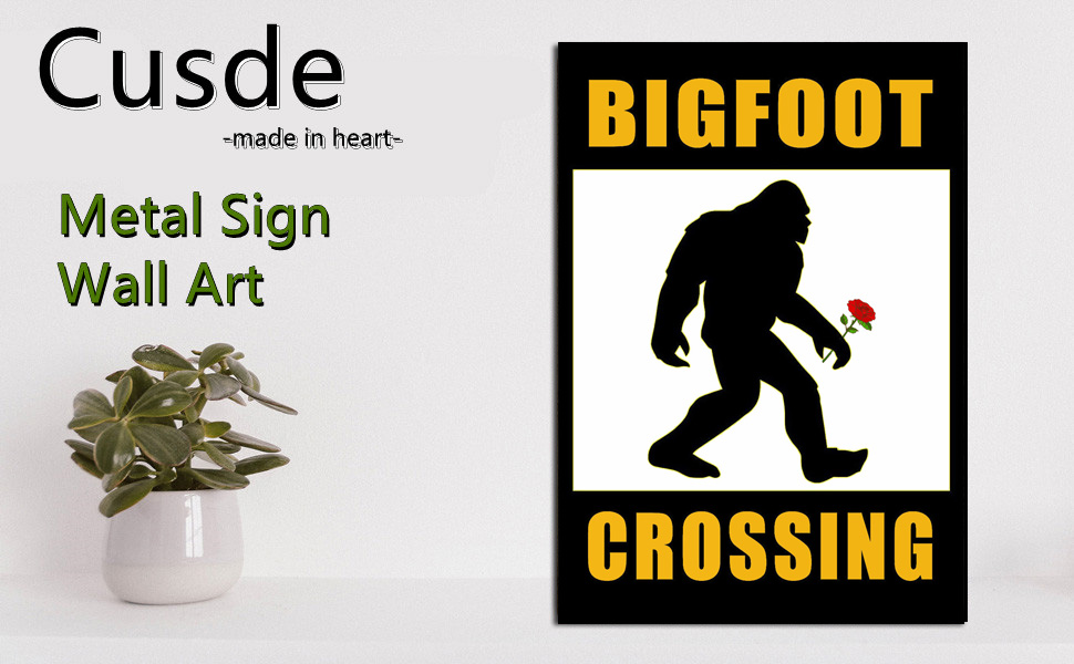 Cusde خمر Bigfoot معدن القصدير علامة ديكور الرجعية ملصق ديكور المنزل Bigfoot معبر الحديد اللوحة الصدأ معدن الحمام المنزل هدية رجل كهف بار نادي في الهواء الطلق داخلي 8x12 بوصة