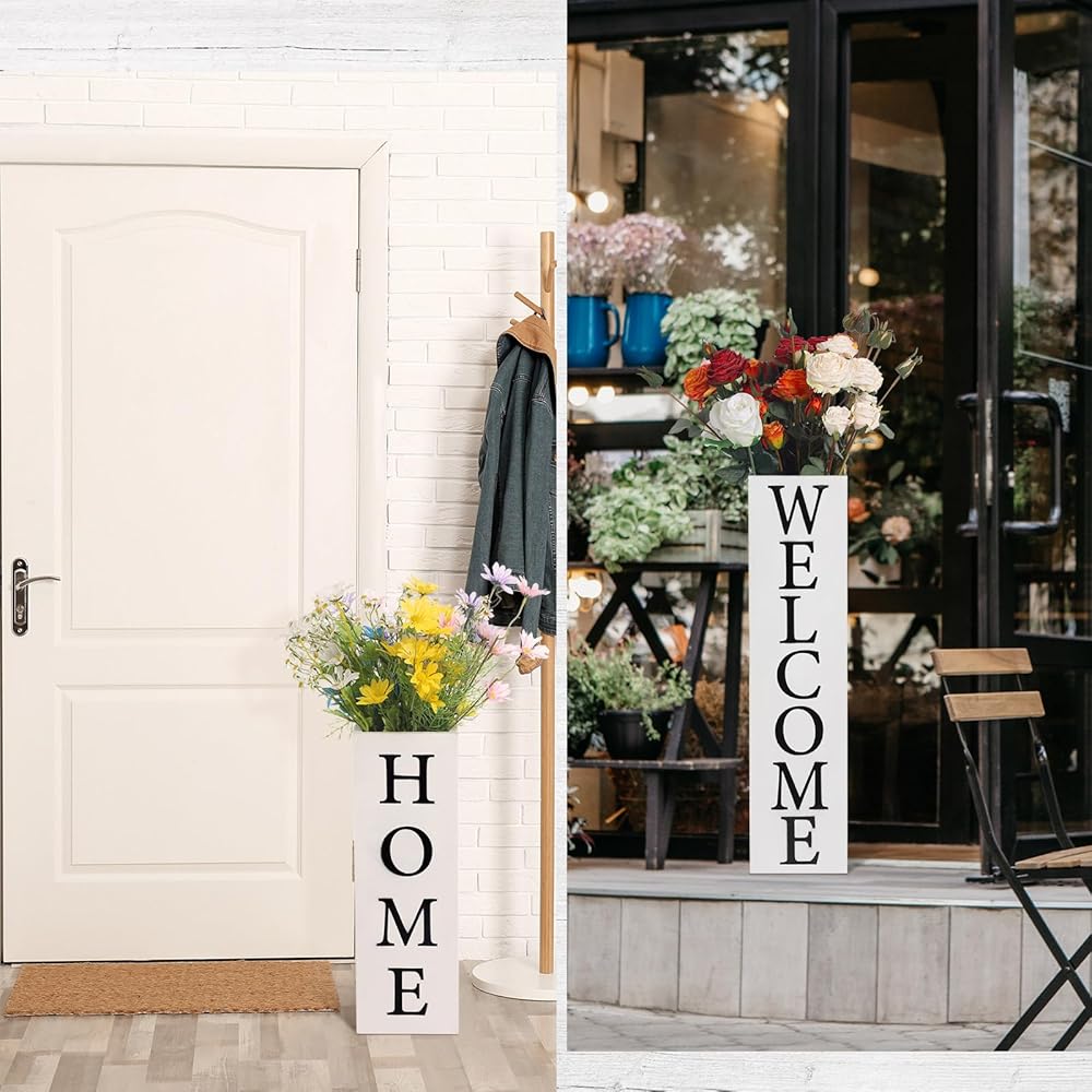 The wooden front porch sign features 2 patterns, including [welcome] and [home] as shown in the picture, adding a pop of vibrancy and visual interest to your home or office decor.